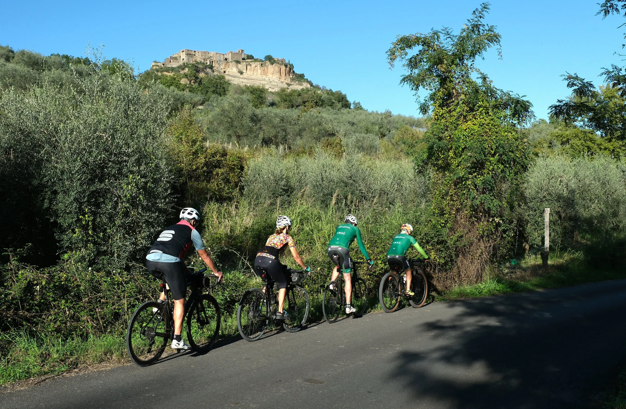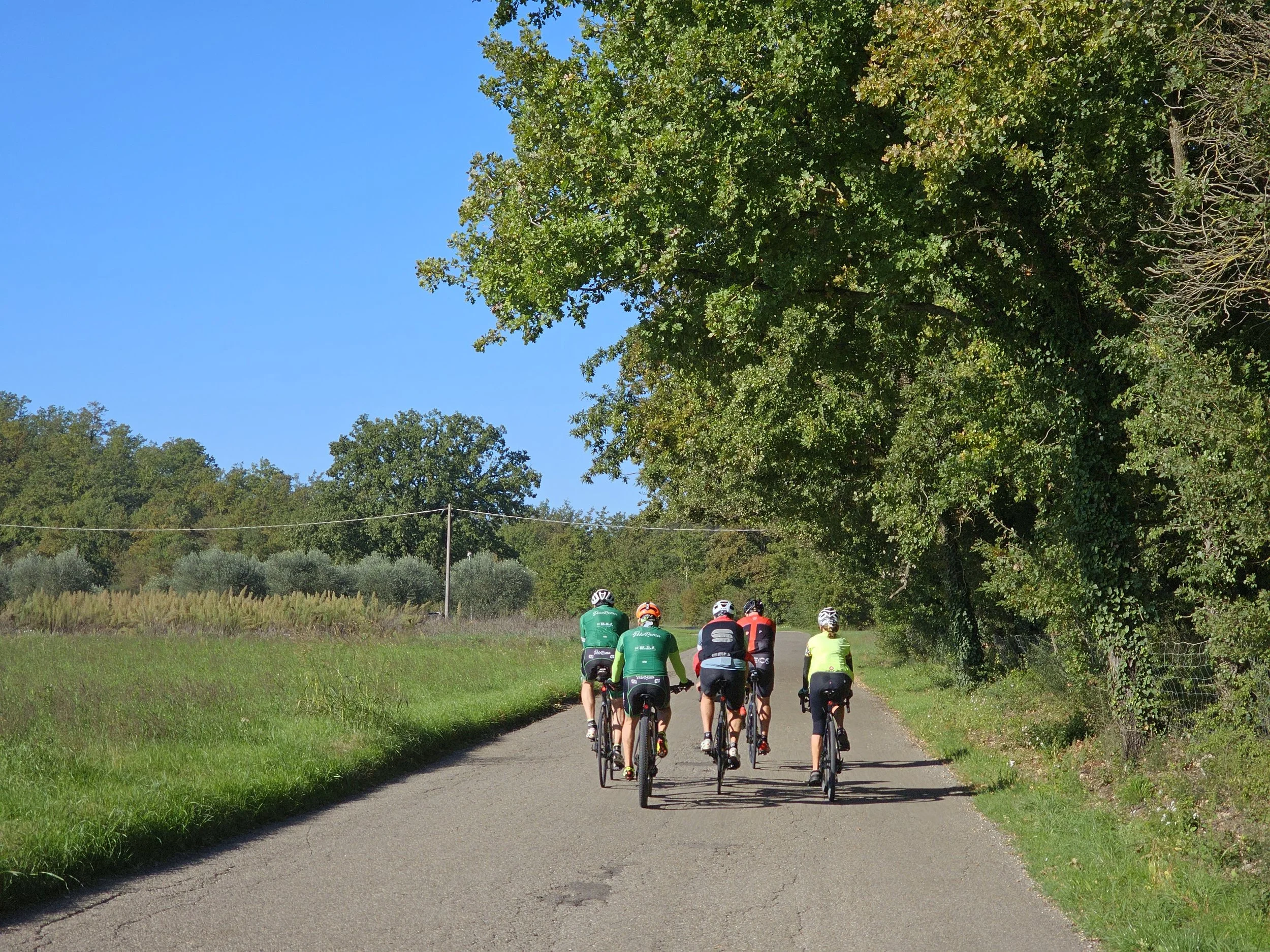Lasciamo Graffignano e affrontiamo una salita piacevolmente circondati da boschetti di ulivi, su un fondo che presto diviene sterrato ma compatto e che, quindi, non comporta alcuna difficoltà di percorrenza.