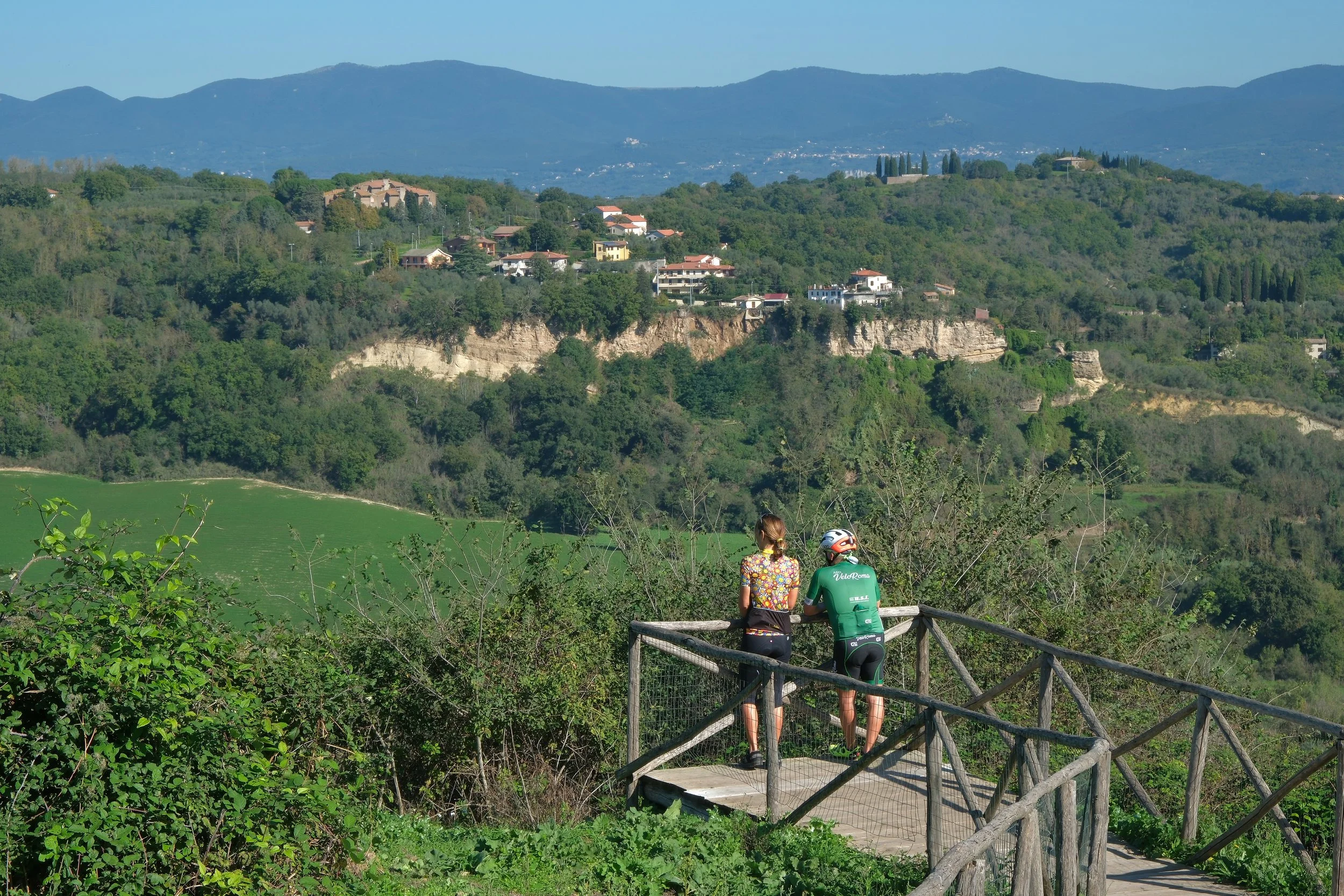 Due chilometri di salita, improvvisamente, ci impongono un cambio di passo. Dal suo culmine, in ogni caso, ogni fatica di giornata può intendersi conclusa. Le nostre ruote, infatti, si ritrovano nuovamente a scorrere liberamente lungo la discesa e la successiva pianura che, attraversato il fiume Tevere, ci conducono al punto di partenza.