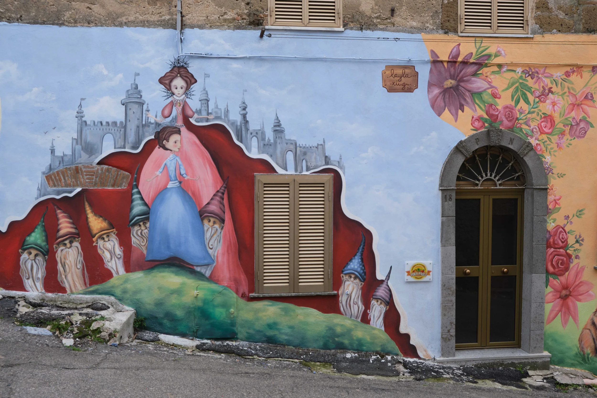 Dalla fine del 2016, infatti, questo borgo è noto come “il paese delle fiabe”, grazie all’iniziativa di un’associazione culturale nata appositamente per coinvolgere numerosi artisti al fine di riempire i vicoli di decine di murales, che appaiono ai visitatori come pagine di un libro – appunto – di fiabe che permette davvero di compiere un salto indietro nel tempo.