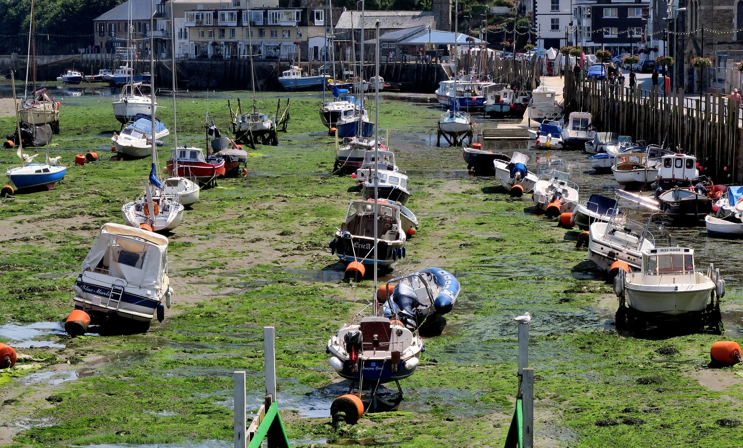 Il fenomeno della marea, oltre che risultare affascinante osservando le spiagge, come quella enorme di Swansea, in Galles, diventa ancora più suggestivo nei porticcioli (St. Ives e Polperro in Cornovaglia, Fishguard in Galles, solo per citarne alcuni tra i numerosi in cui mi sono fermato), quando decine di barche colorate si adagiano sul fianco, quasi a volersi riposare e abbandonarsi, accidiose e indolenti, prima di essere di nuovo ridestate dall'acqua.