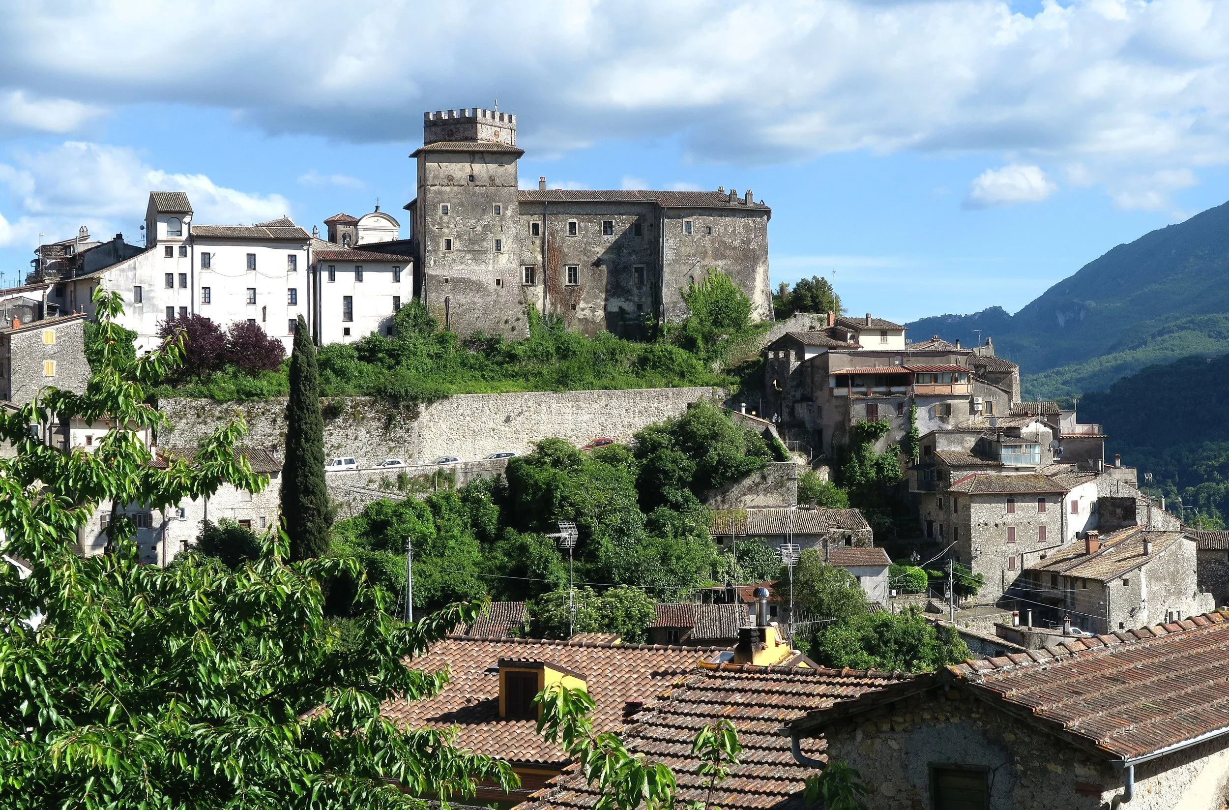 Dopo quasi 10 km, entriamo nel paese di Orvinio. Dominato dal suo imponente castello, di cui rimangono elementi originali come il maschio cilindrico e le mura merlate, il borgo merita certamente una sosta un po' più lunga, anche per ragioni… gastronomiche!
