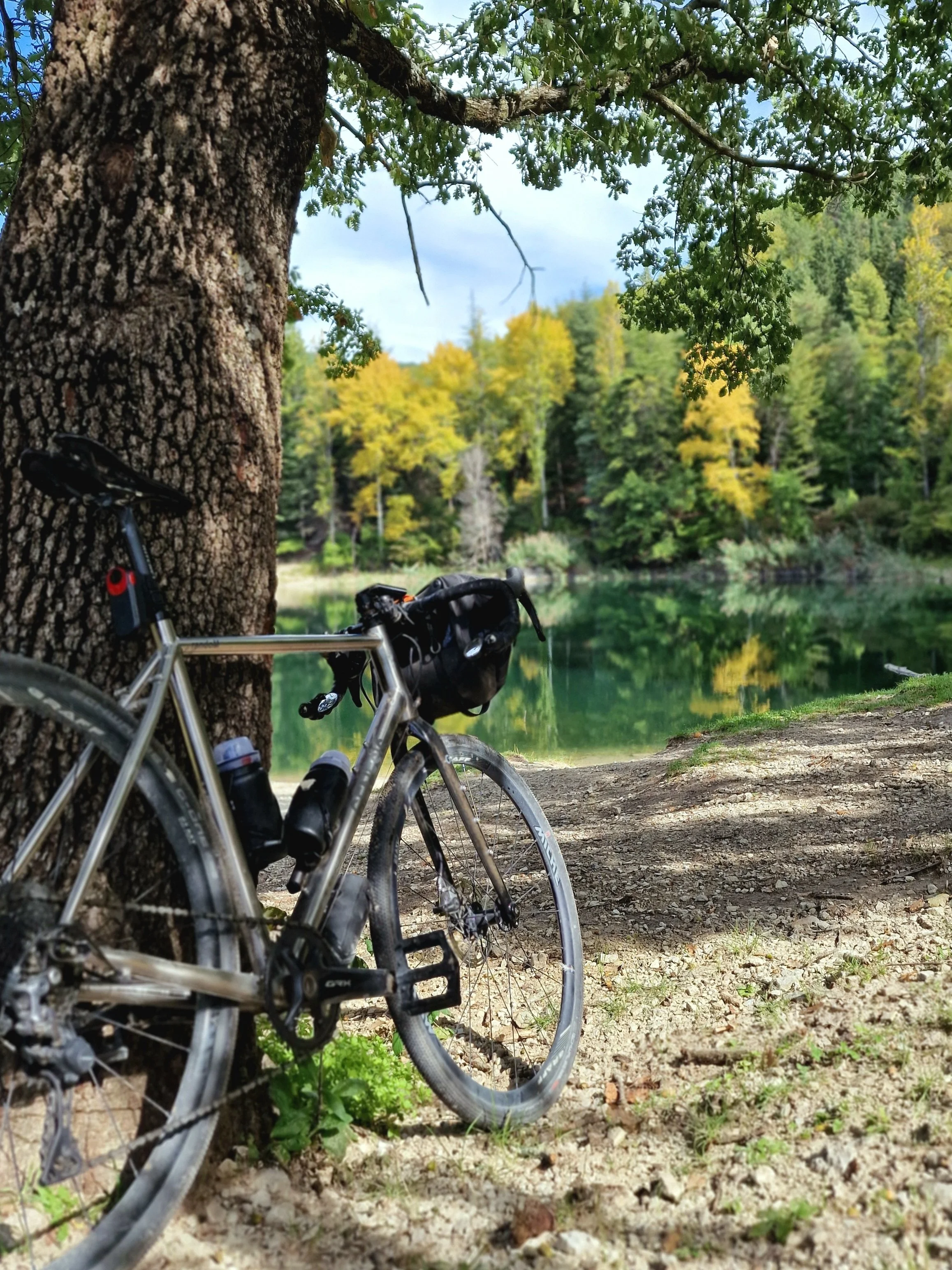 Ci avviamo, dunque, in direzione del lago Fraturno. Il fondo diviene sempre più sconnesso e la pedalata si fa via via più impegnativa, anche in considerazione della ripida discesa che ci conduce sulle sponde del lago.