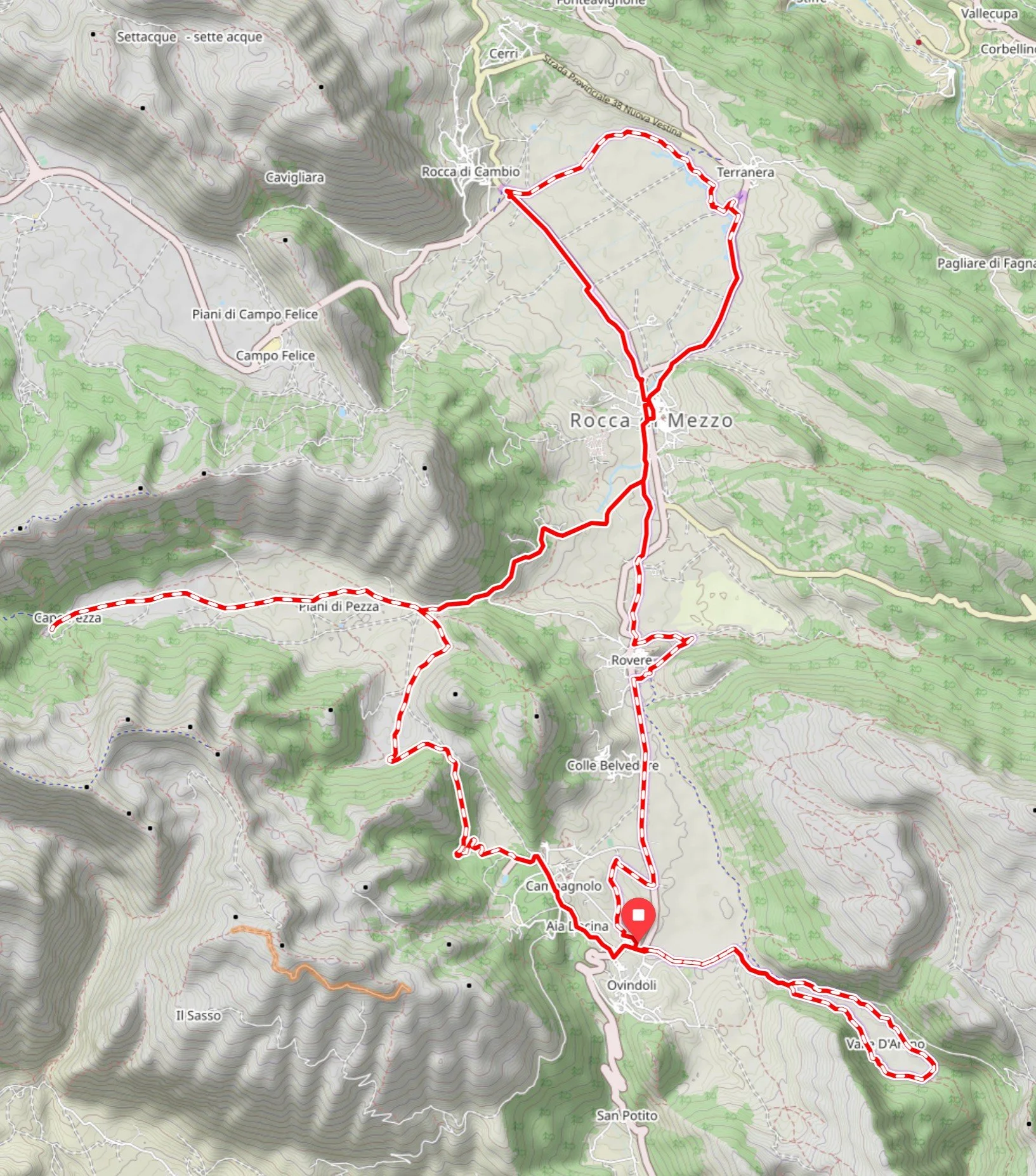 Ci troviamo sul tracciato del "grande anello del Parco", un percorso di 80 chilometri che si snoda nel cuore dell'altopiano che si estende tra la cima del Sirente (mt 2.349 s.l.m.) e la vetta del Velino (mt 2.487 s.l.m.), che in questa zona sono sovrastate solo dal massiccio del Gran Sasso, ben visibile all'orizzonte nelle giornate più limpide.