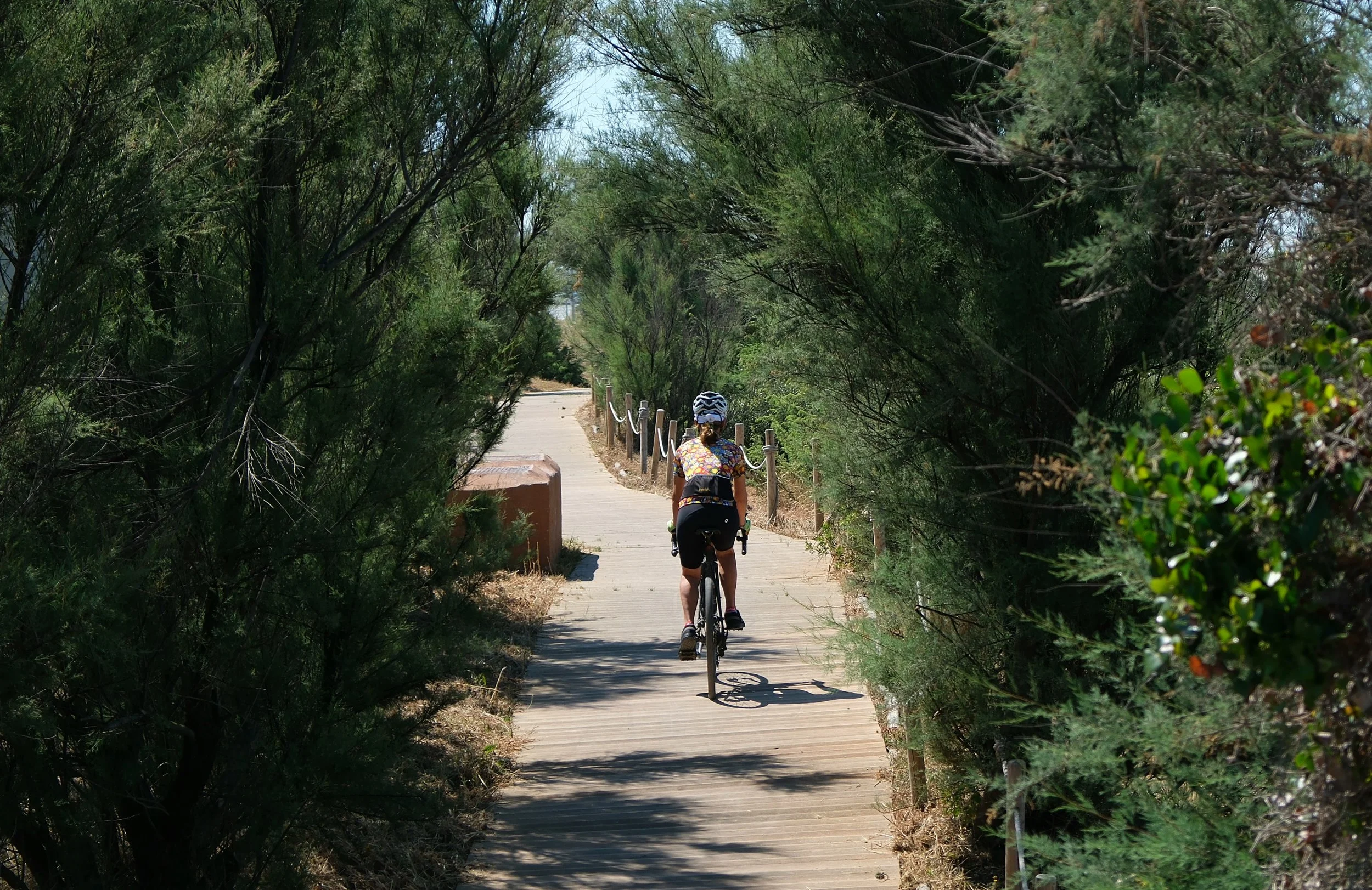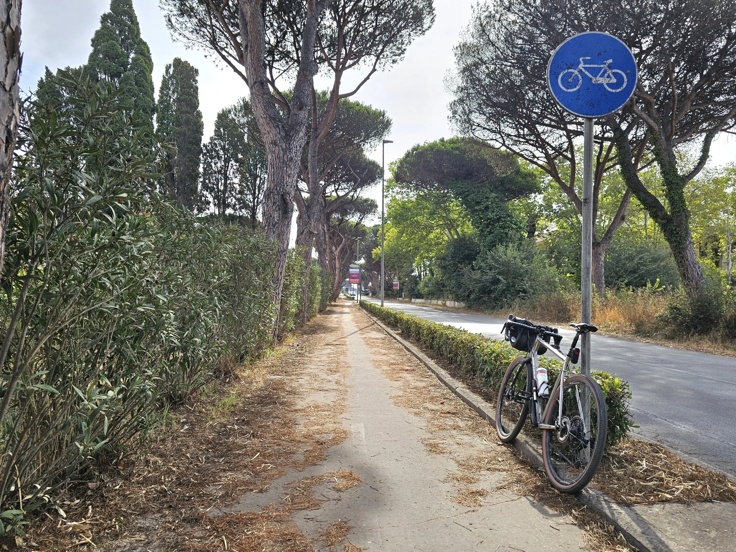 Ritornati sul lungomare, ci prepariamo all'attraversamento di Ladispoli, tra nuovissime piste ciclabili in sede protetta, tratti a bordo spiaggia e due ponti (sui fossi Vaccina e Sanguinara) da superare con la bici condotta a mano.
