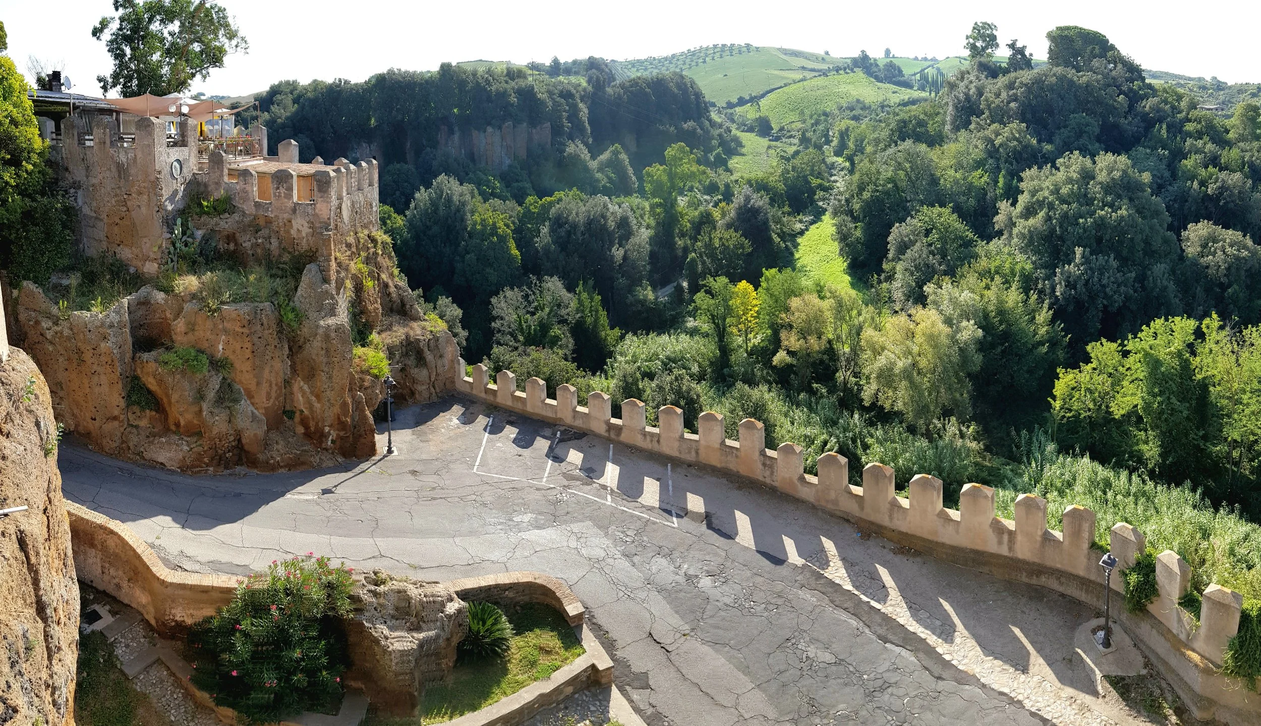 Evitiamo nuovamente il traffico della via consolare girando dopo pochi metri al primo semaforo e procediamo lungo una piacevole strada, per lo più ombreggiata, che al chilometro 27 del nostro itinerario ci conduce alla base di una suggestiva rocca di tufo che si erge nel cuore della campagna. È il momento di scalare sul rapporto più agile per affrontare il primo tratto in doppia cifra della giornata!