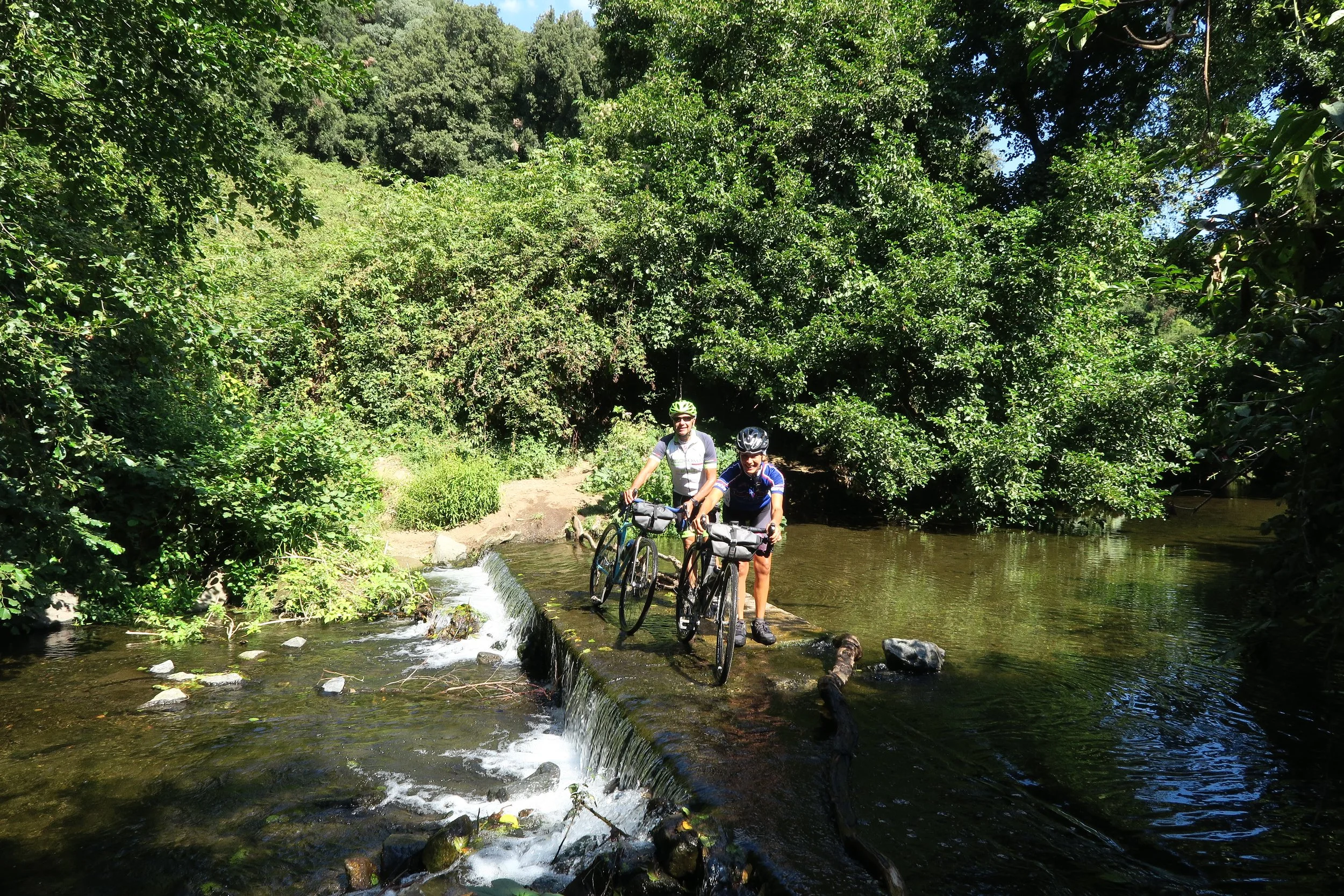 Al termine della necropoli, proseguiamo sempre su fondo sterrato fino ad affrontare una ripida e insidiosa discesa che ci porta ad attraversare il torrente Vaccina sul guado del Fosso della Mola.