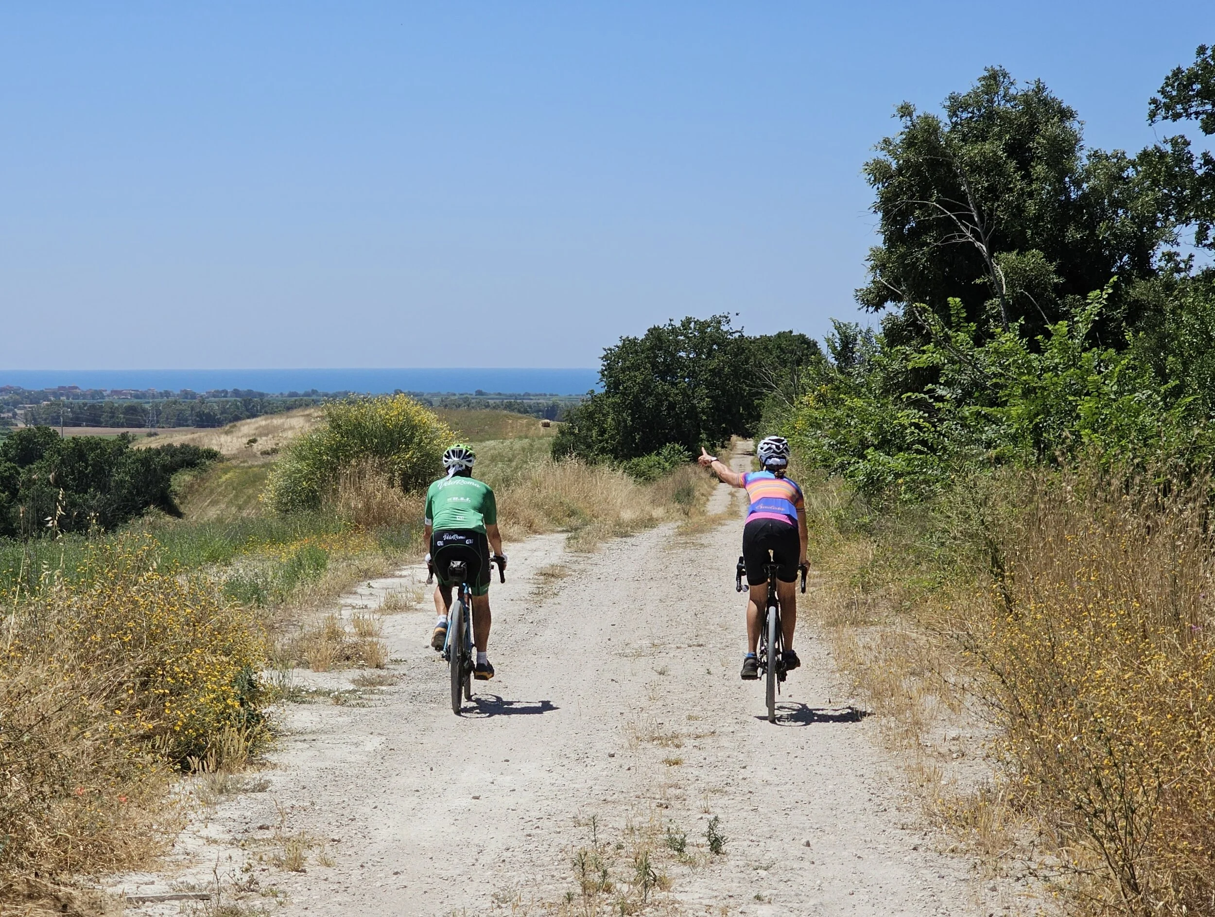 La scelta premia. La deviazione, infatti, è davvero piacevole, seppure presenta alcuni tratti sabbiosi e un po' insidiosi, soprattutto nella parte di discesa che, nel secondo tratto di questo che – di fatto – è un "ferro di cavallo", ci riporta verso la S.S. Aurelia, in vista del mare.