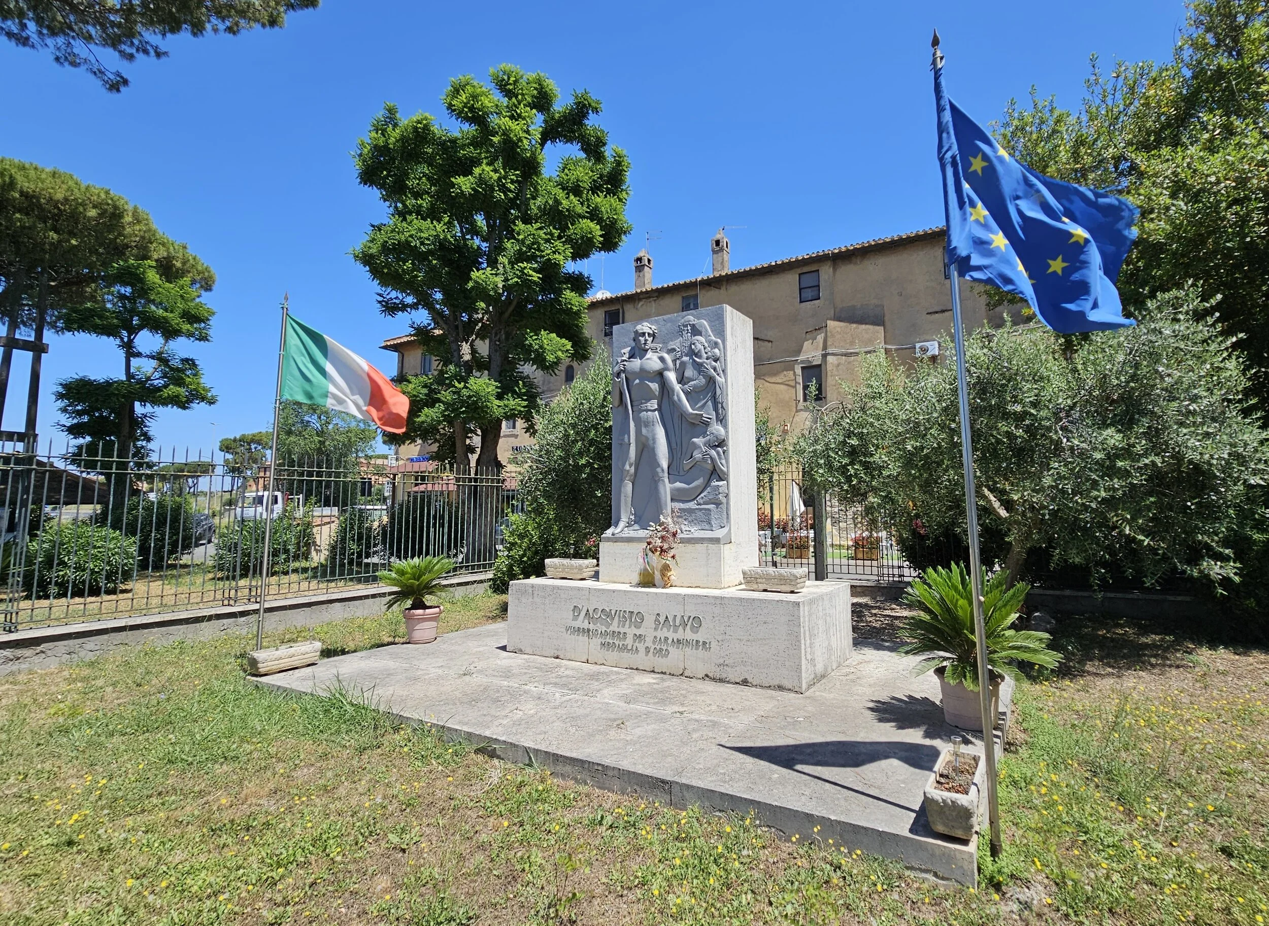 Nei pressi di una fontana, dove già possiamo rabboccare le nostre borracce, è d'obbligo un omaggio al monumento a Salvo D'Acquisto, vicebrigadiere insignito della medaglia d'oro al valor militare giacché, durante la seconda guerra mondiale, a soli 23 anni sacrificò la propria vita per salvare un gruppo di civili durante un rastrellamento per rappresaglia ad opera delle truppe naziste.