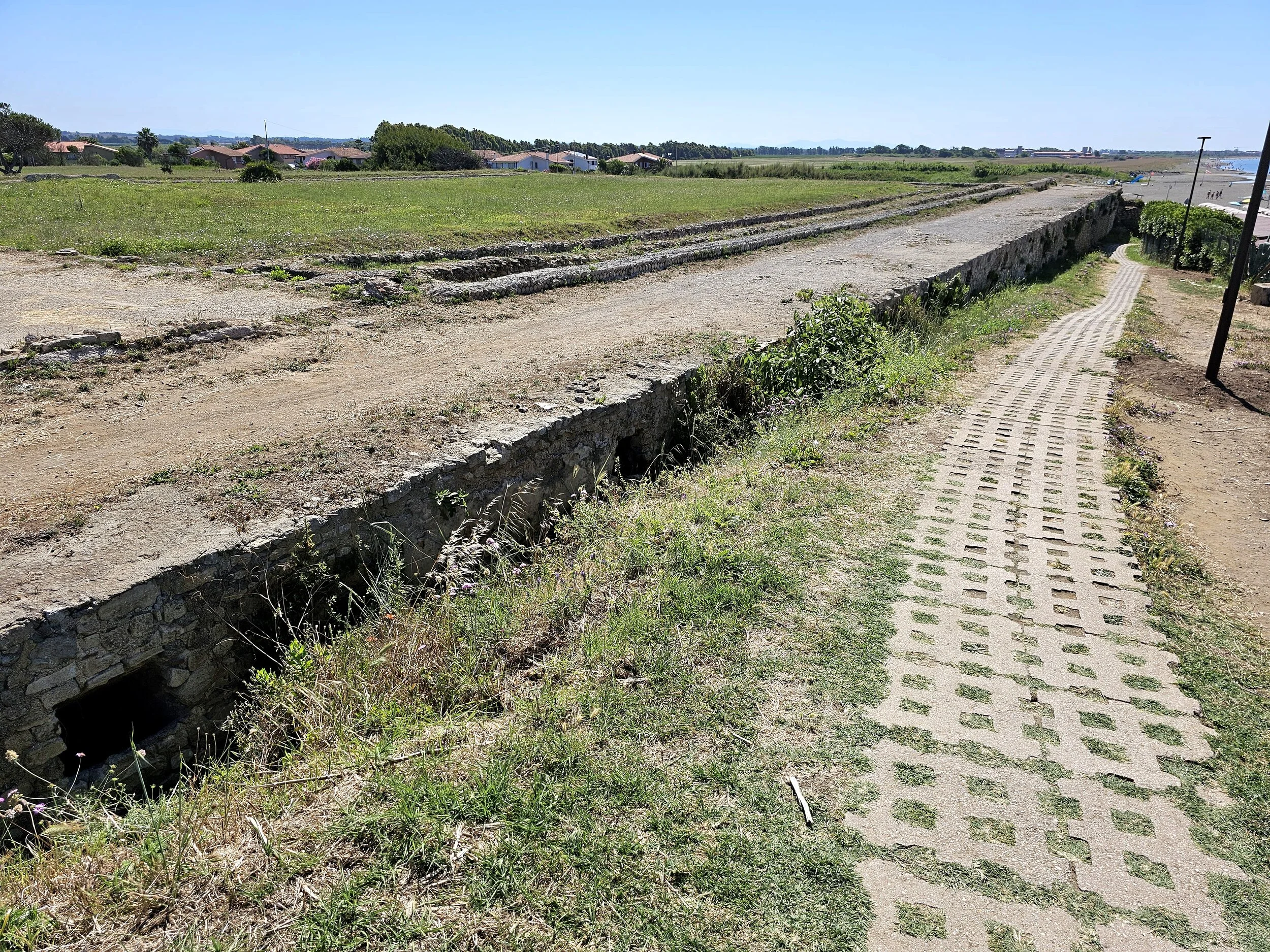 Dopo il secondo ponte, una deviazione di pochi metri sul marciapiede, sempre mantenendo la bici condotta a mano, ci consente di ammirare i resti del pavimento a mosaico della vasca di un'antica villa romana.
