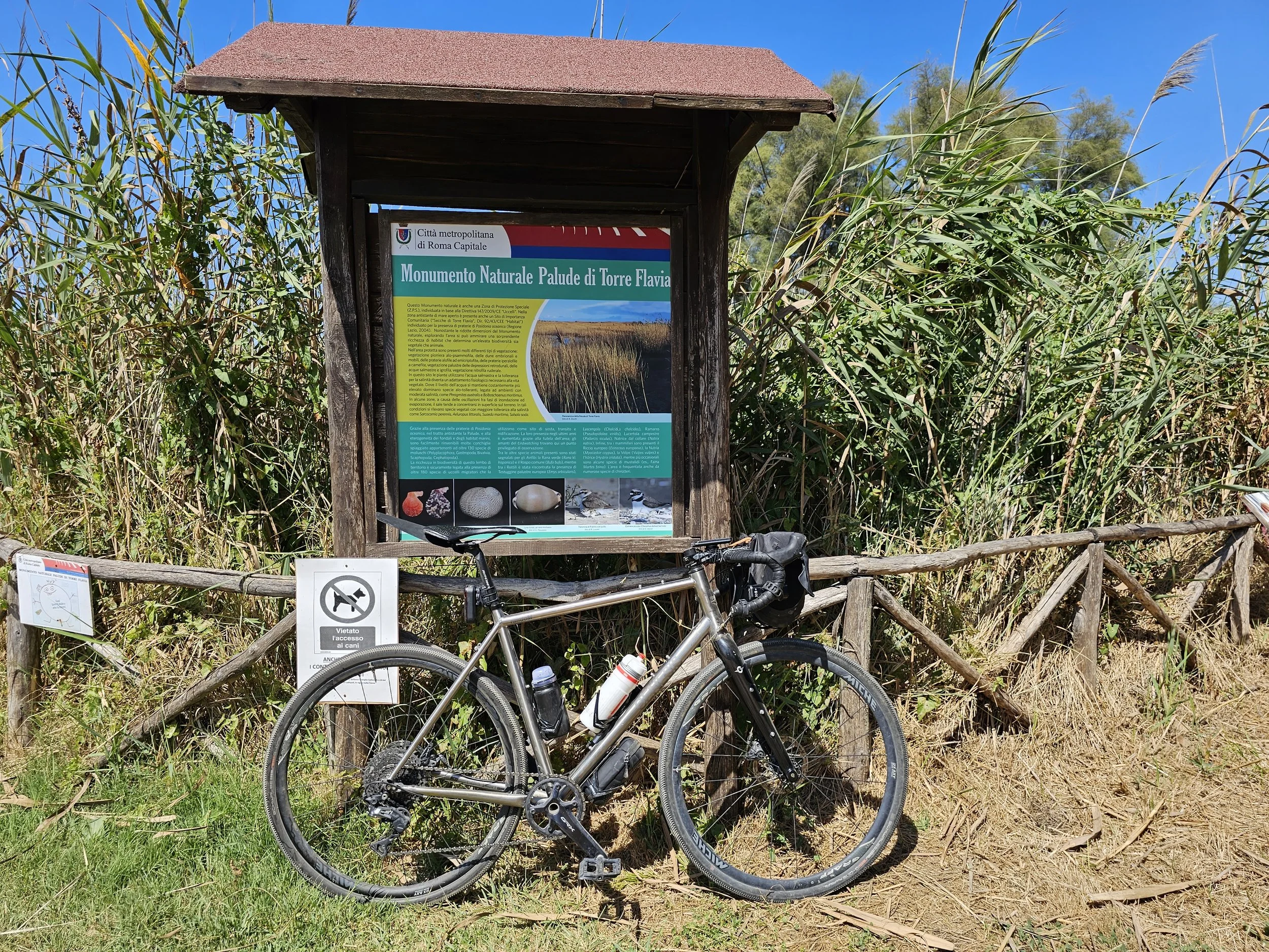 Lasciata la cittadina, al chilometro 74,3 del percorso iniziamo a pedalare ai margini dell'area WWF del bosco di Palo Laziale, su una piacevole pista ciclopedonale che alterna tratti asfaltati ad altri sterrati.
