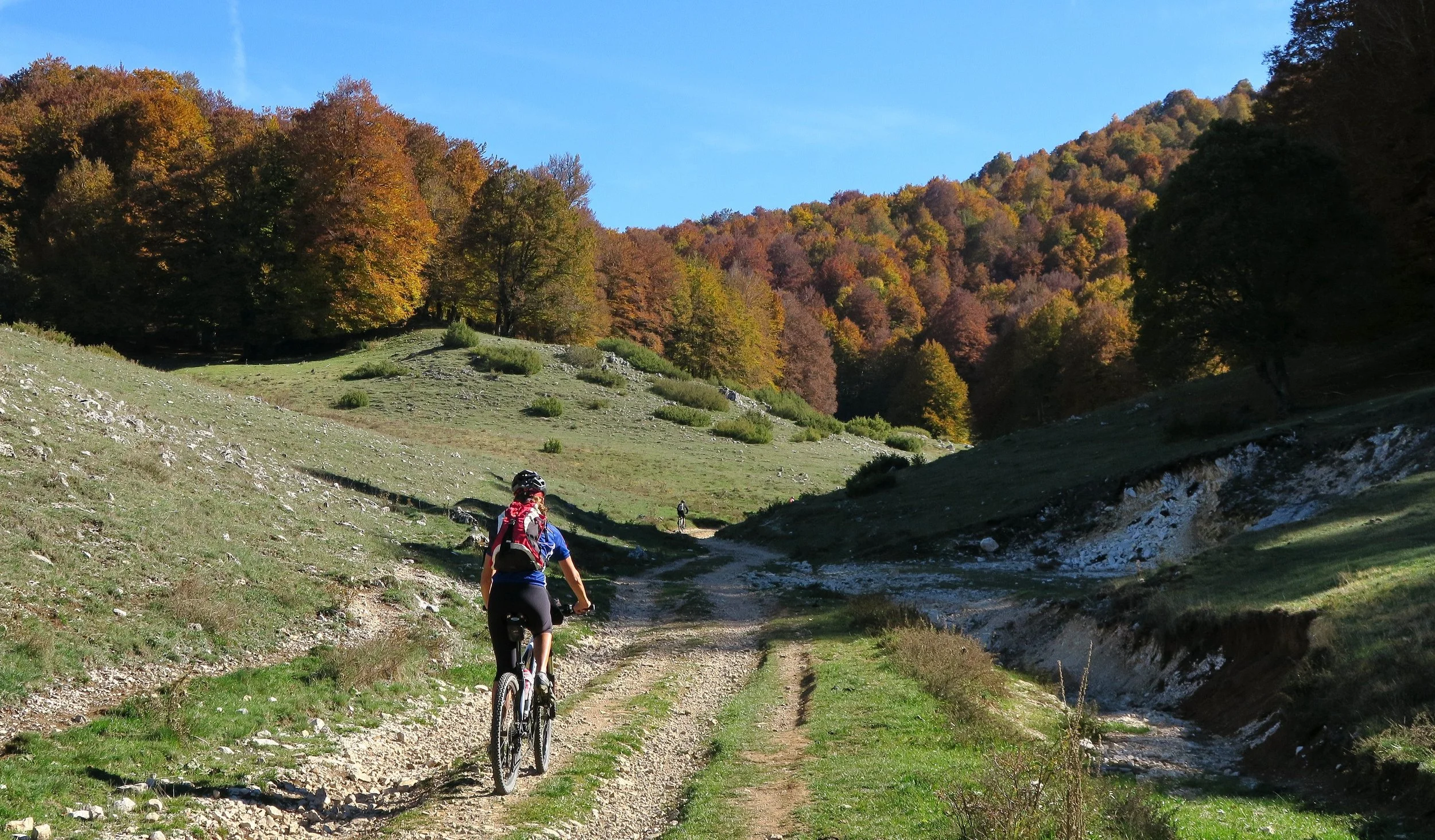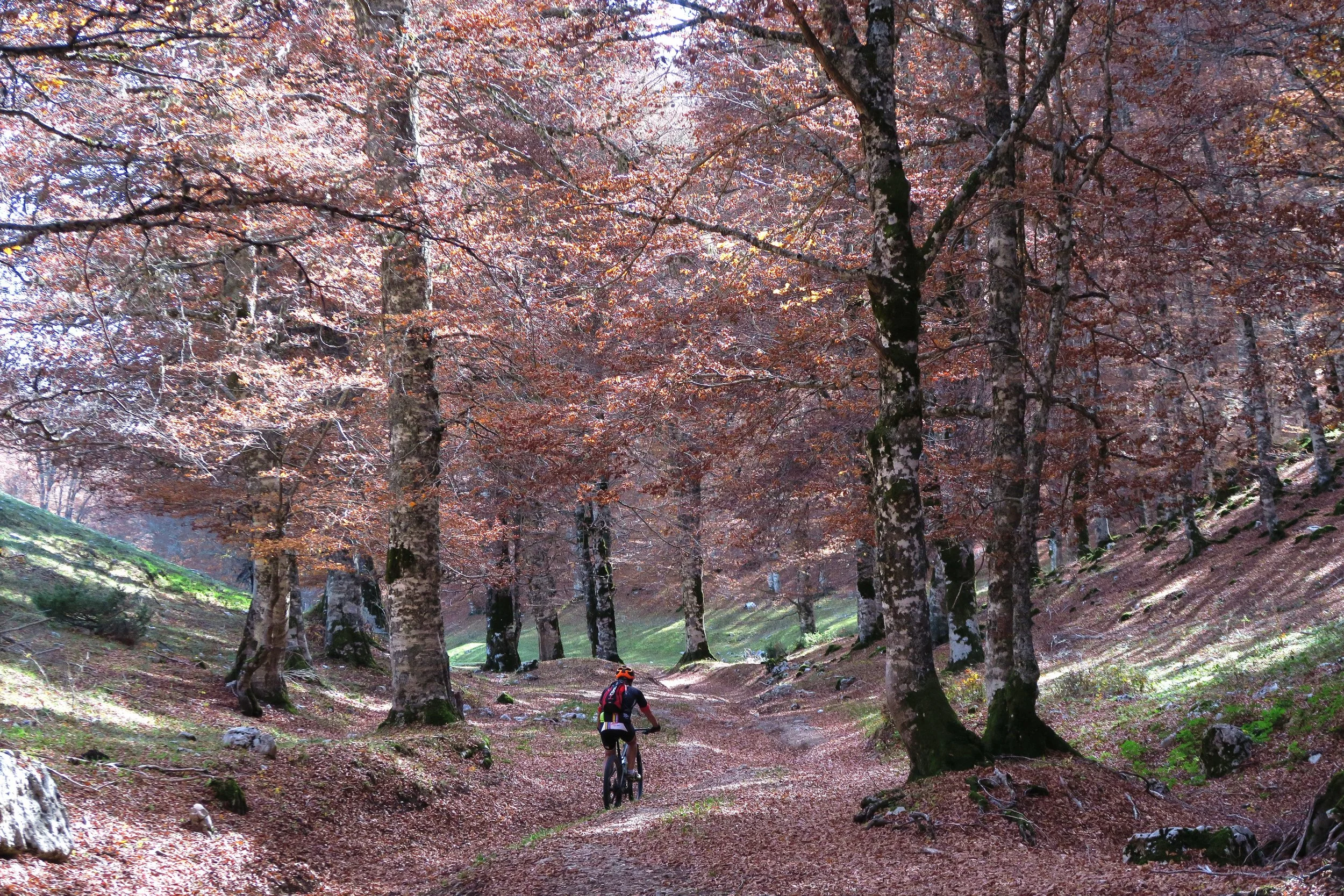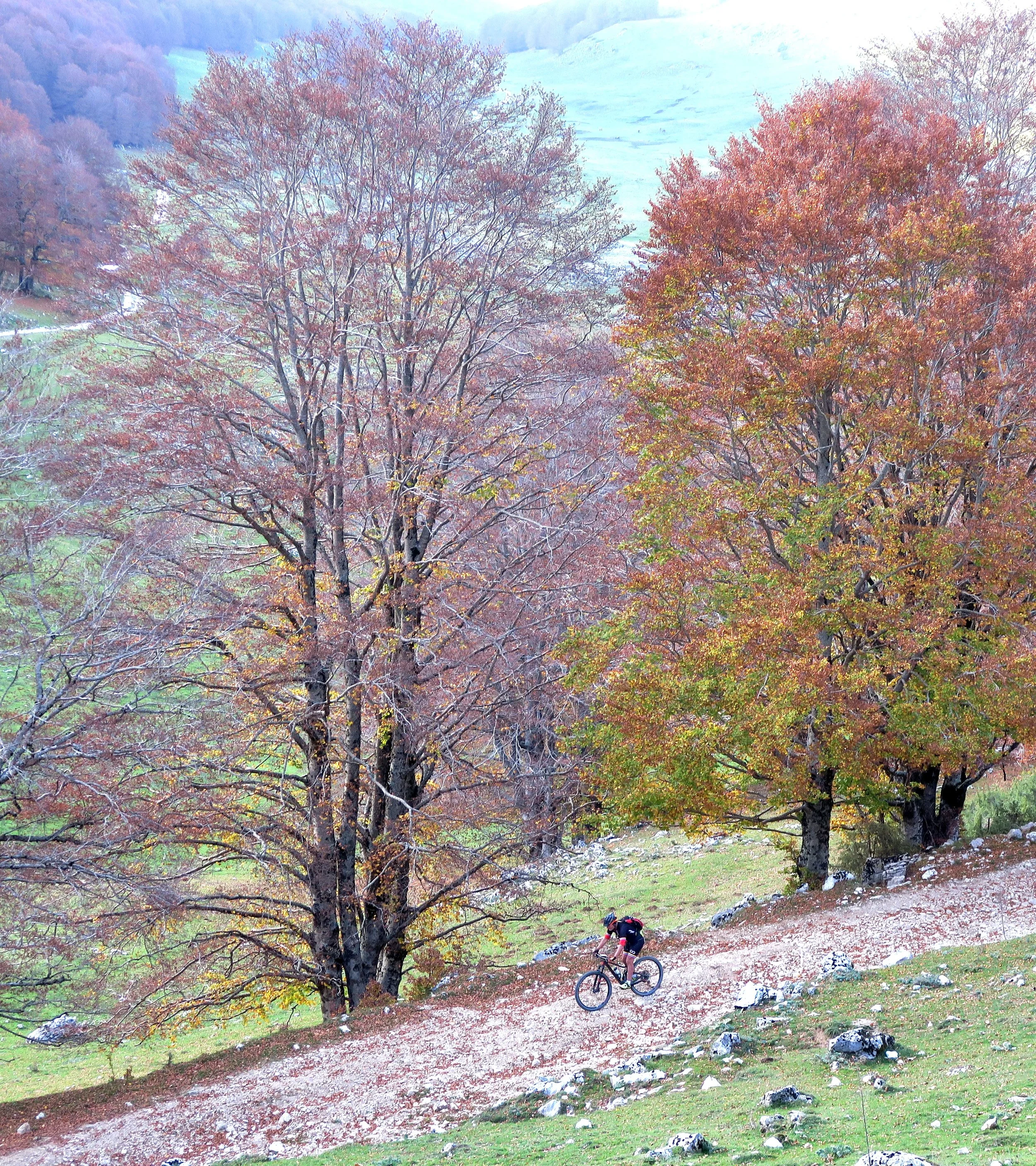 Un percorso in fuoristrada molto impegnativo, per il fondo in gran parte sconnesso e per alcuni passaggi ripidi e tecnici, ma di enorme interesse paesaggistico, pedalando nel cuore della faggeta più grande d'Europa.
