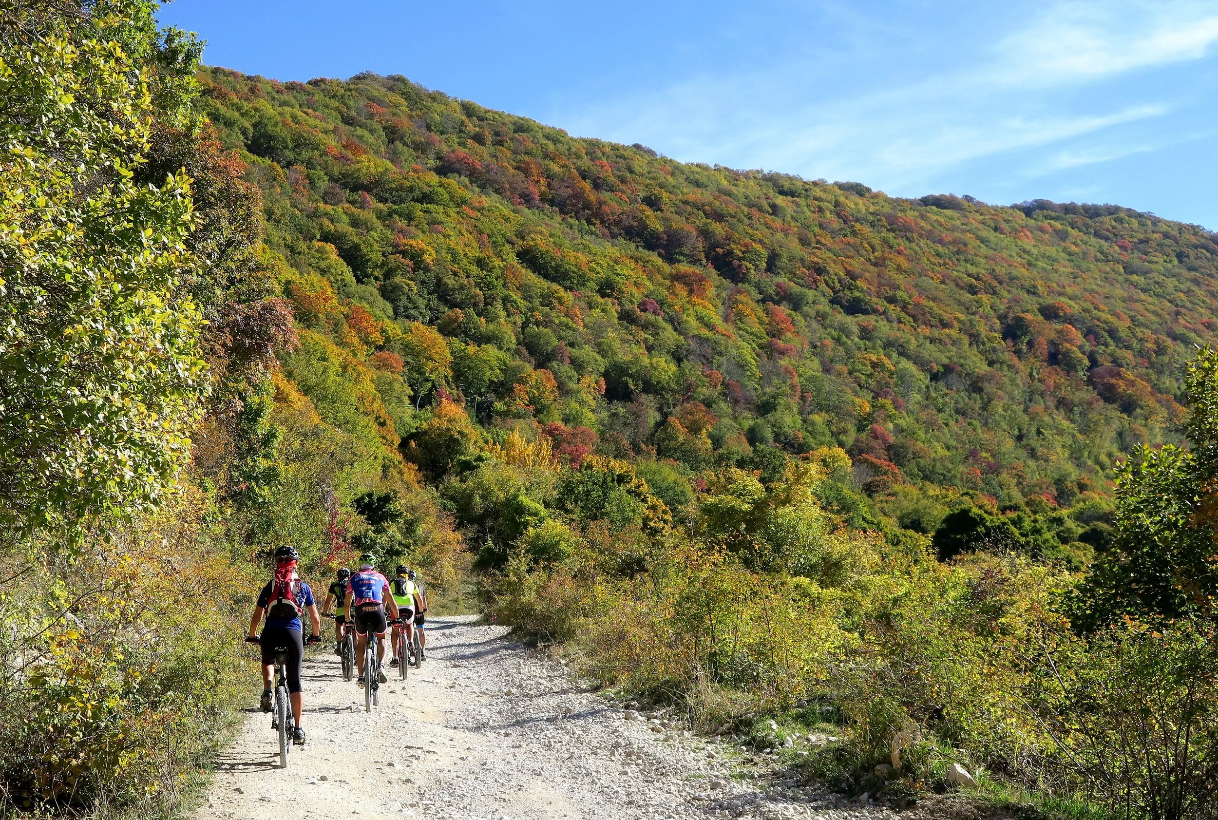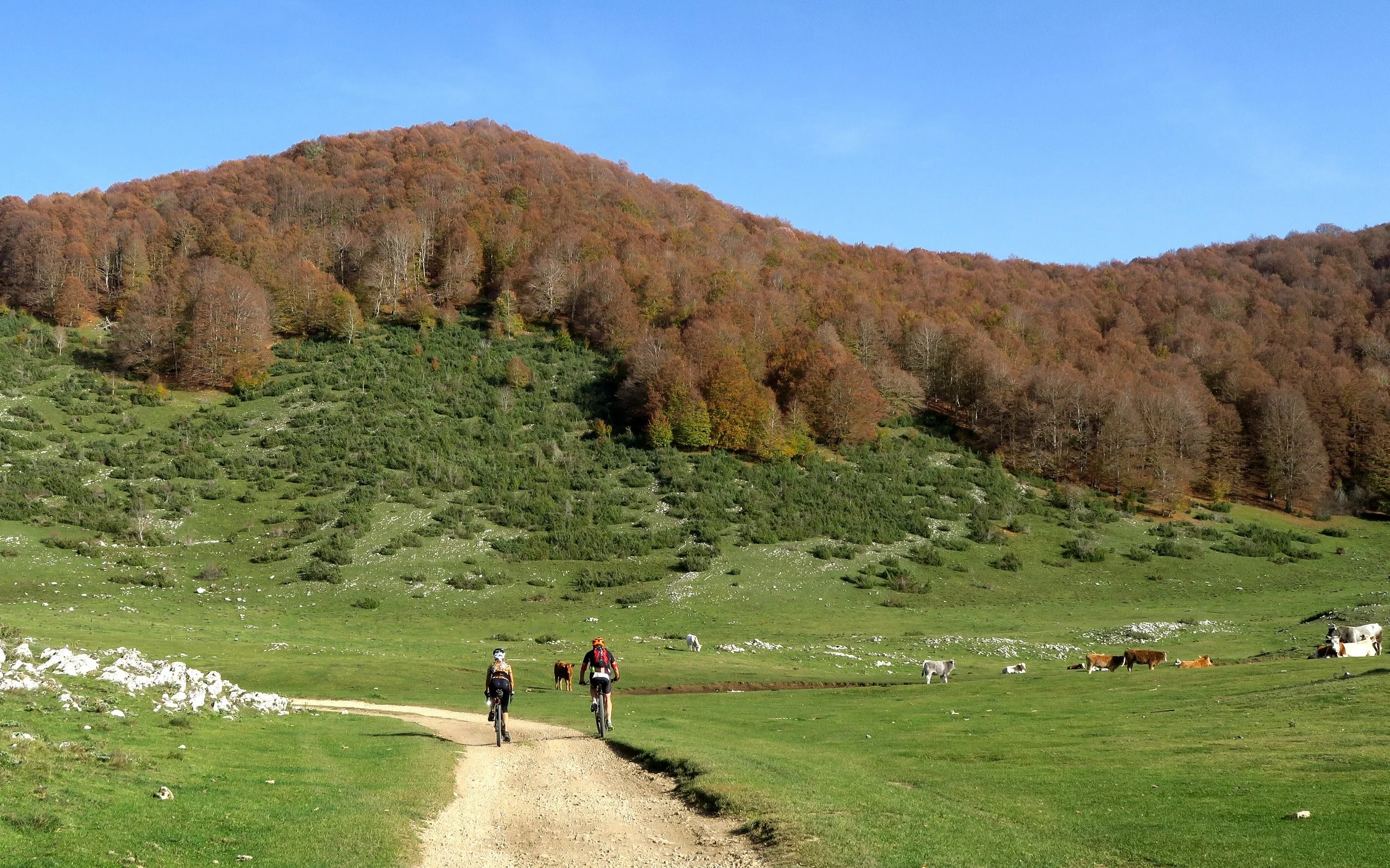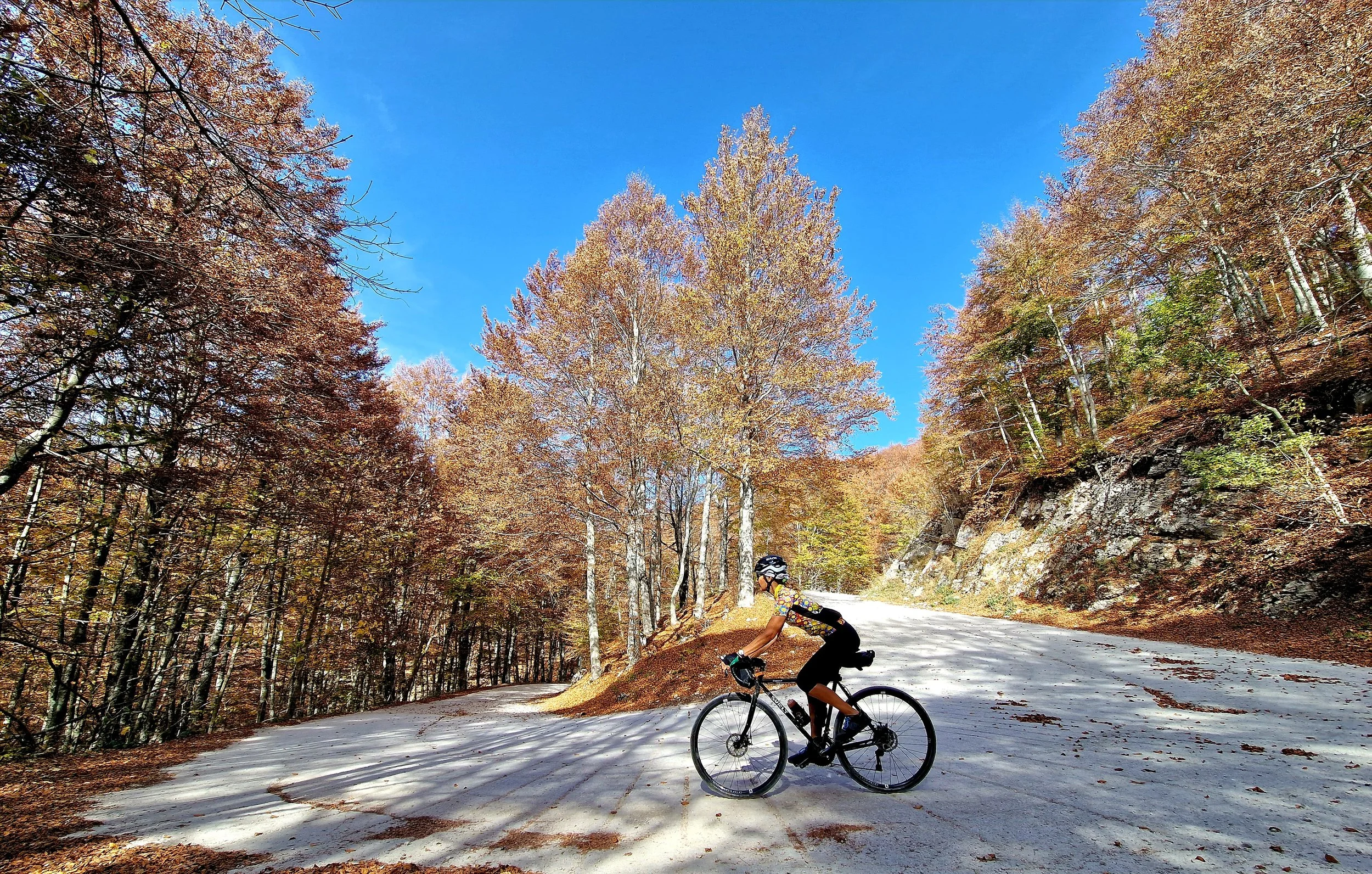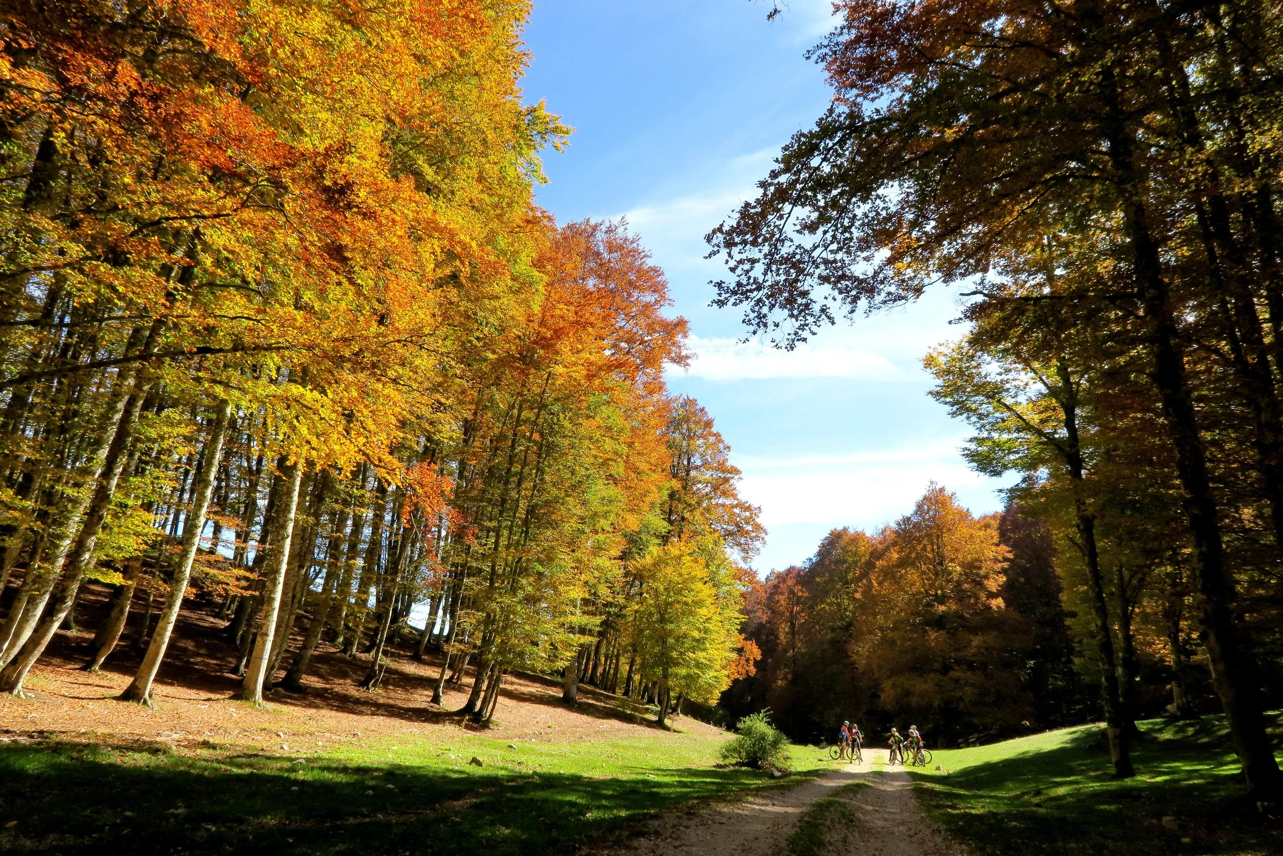 Un percorso in fuoristrada molto impegnativo, per il fondo in gran parte sconnesso e per alcuni passaggi ripidi e tecnici, ma di enorme interesse paesaggistico, pedalando nel cuore della faggeta più grande d'Europa.