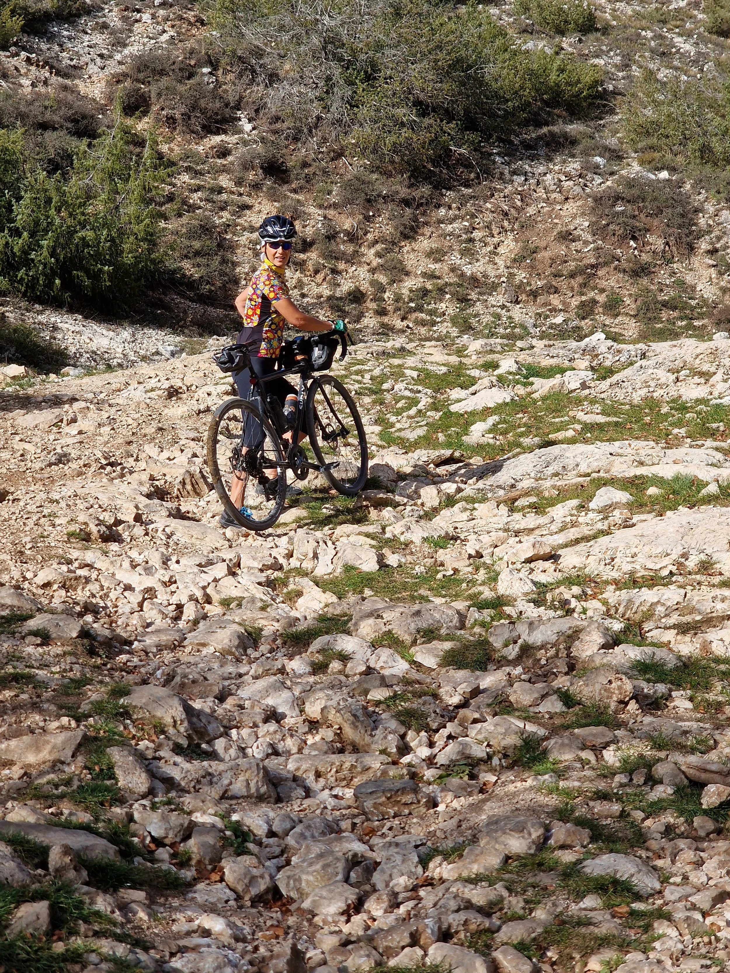Poco più avanti, al chilometro 15 dell'itinerario, ignoriamo la prosecuzione naturale della strada sterrata e giriamo nettamente a destra, affrontando un tratto di salita nel quale anche i più allenati saranno costretti a mettere il piede a terra e proseguire con la bici a spinta per qualche centinaia di metri, in considerazione del fondo sassoso decisamente impraticabile.