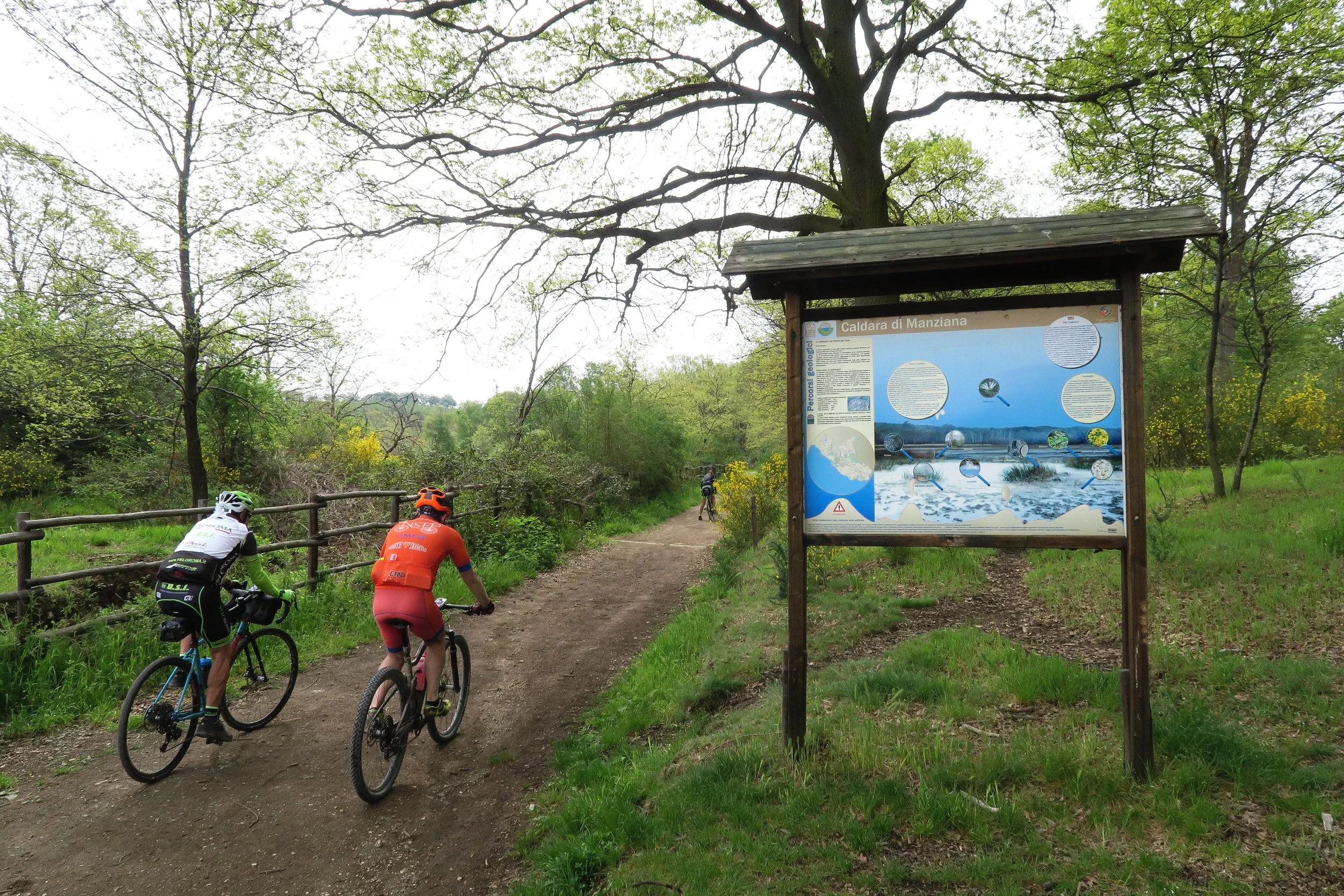 Da un sito di interesse storico a una meraviglia naturale: attraversato il Bosco di Macchia Grande, facendo attenzione a mucche e cavalli che facilmente qui si possono incontrare, giungiamo alla caldara di Manziana, resti di un antico cratere e oggi area protetta costituita da un'ampia palude su cui spiccano piccoli geyser che spruzzano acqua sulfurea, fanghi e gas.