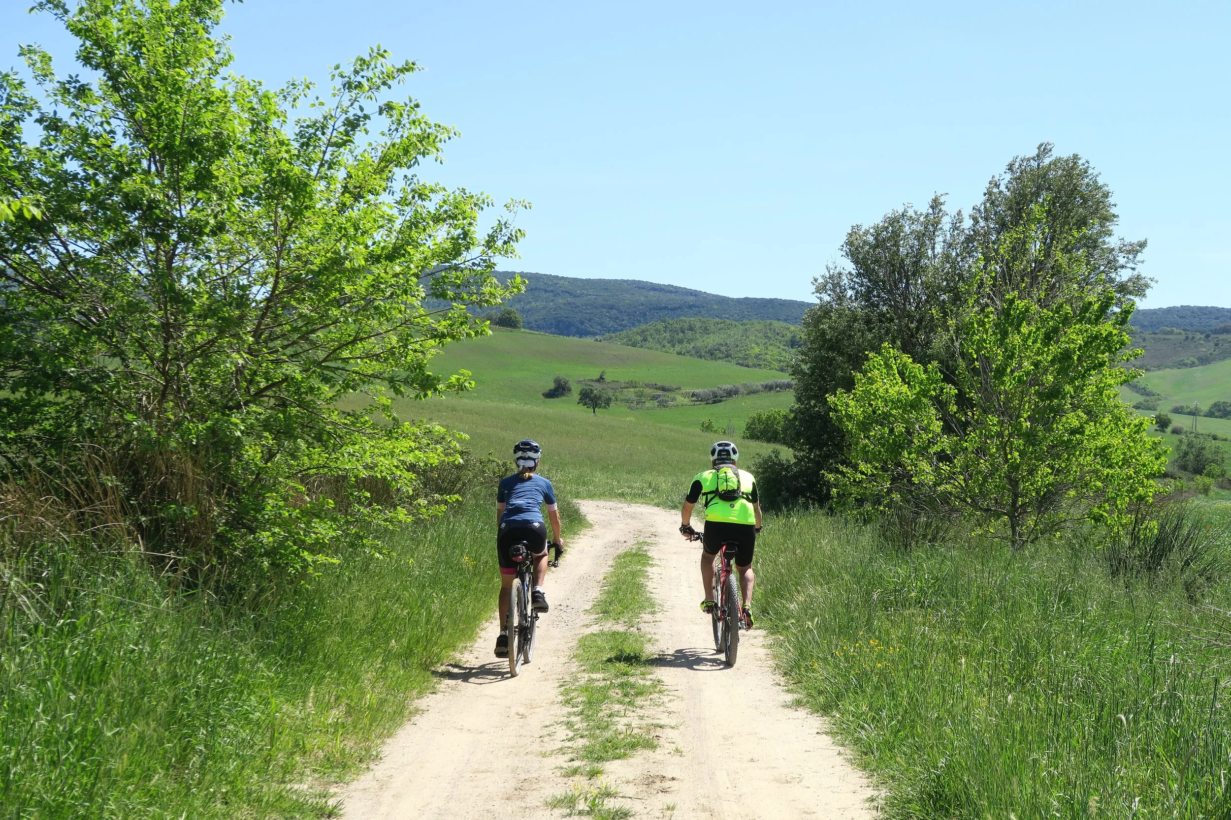 Rimontati in sella, percorriamo un tratto di sei chilometri in leggera salita e dal fondo di pietre smosse, per poi lasciare (momentaneamente) il tracciato della vecchia ferrovia e attraversare un esteso altopiano di campi coltivati e dirigerci, così, verso Civitella Cesi, senza trascurare la breve deviazione (al km 102,8 del percorso) per resti della necropoli etrusca di San Giovenale.