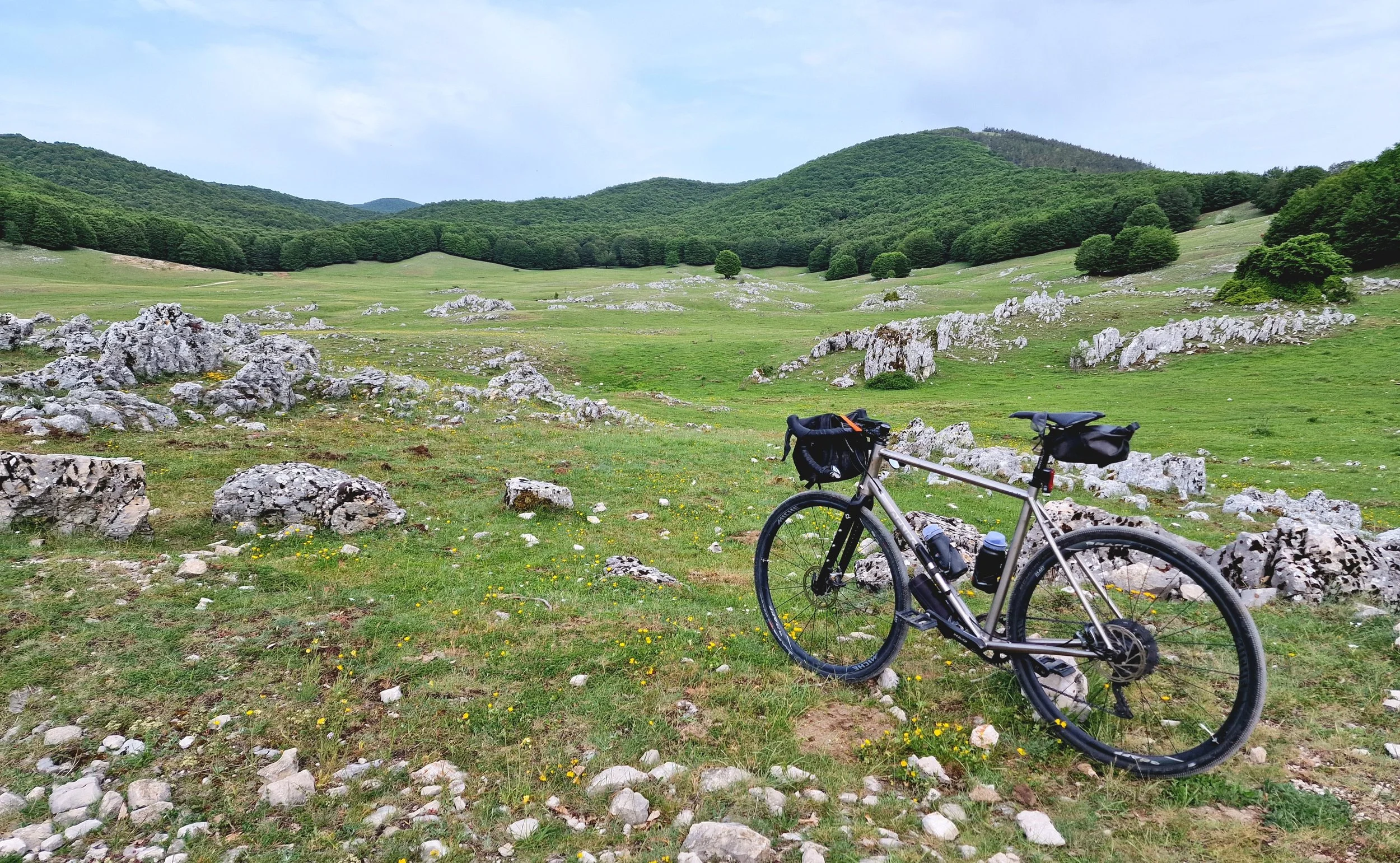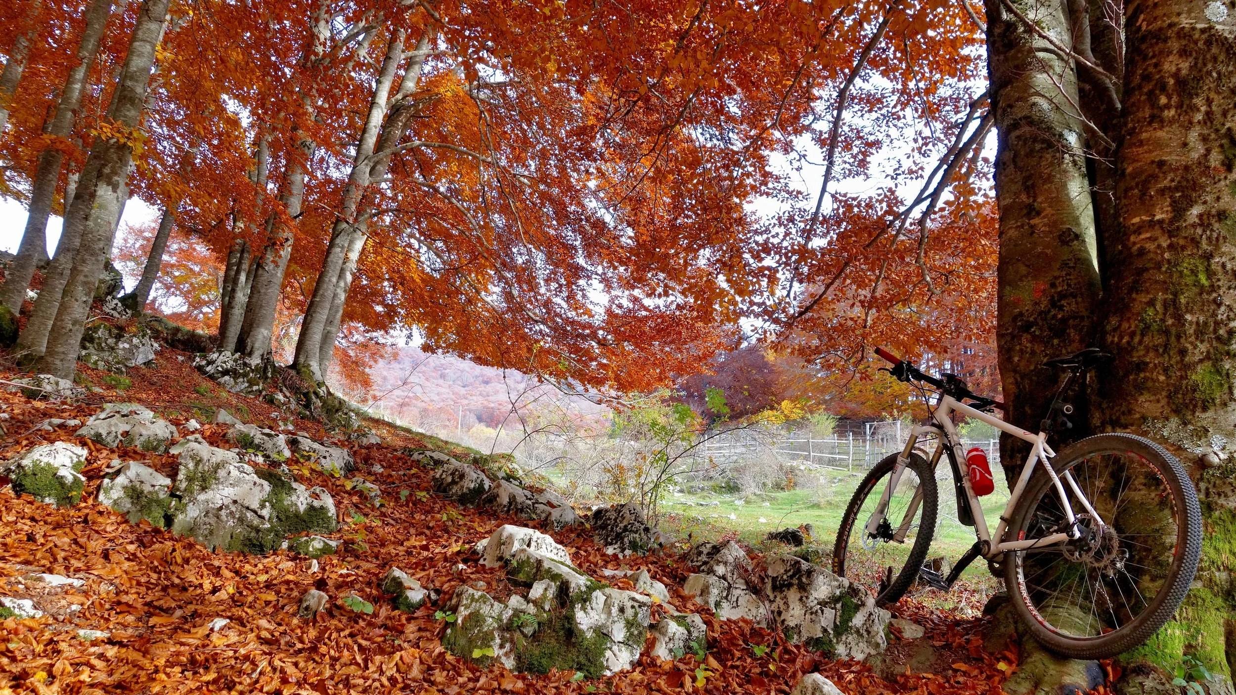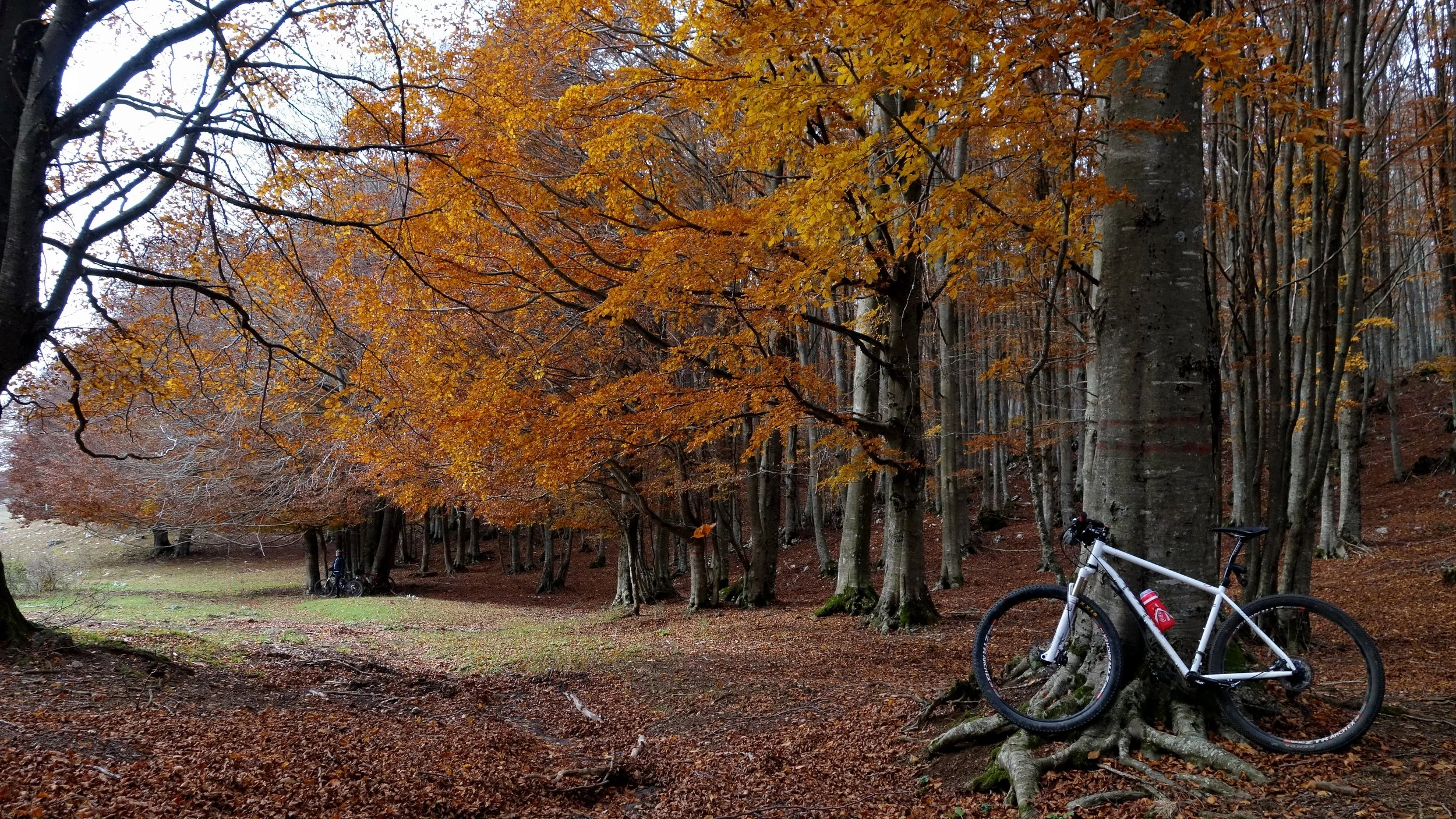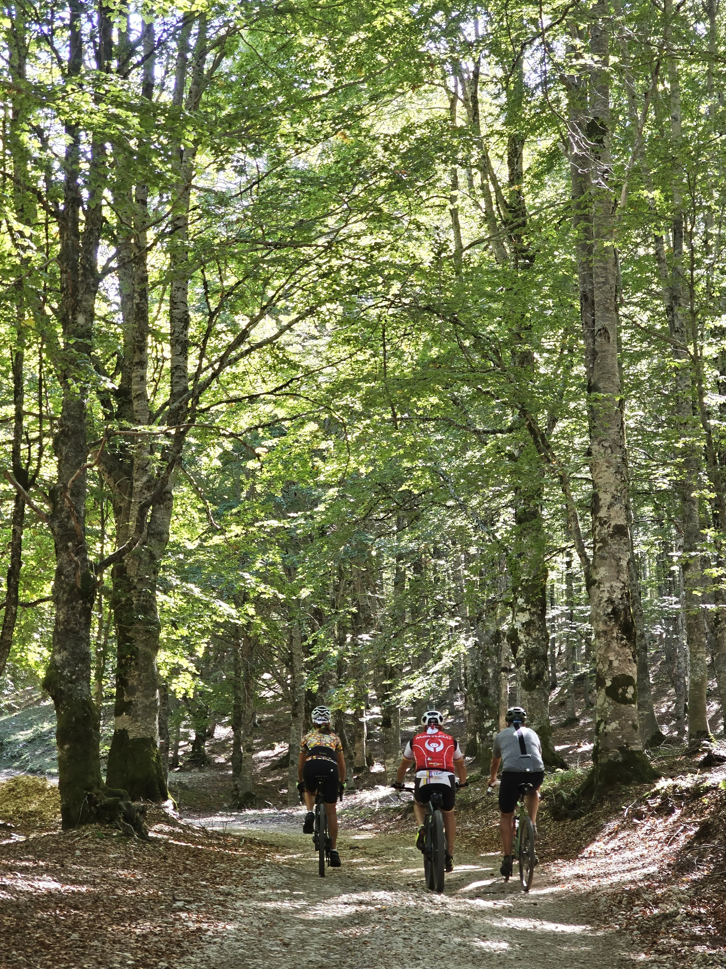 Un itinerario tutto in quota, immersi nella faggeta più grande d'Europa, tra cavalli curiosi e suggestivi panorami che, frequentemente e improvvisamente, si spalancano davanti alle ruote quando si aprono i “sipari alberati”.