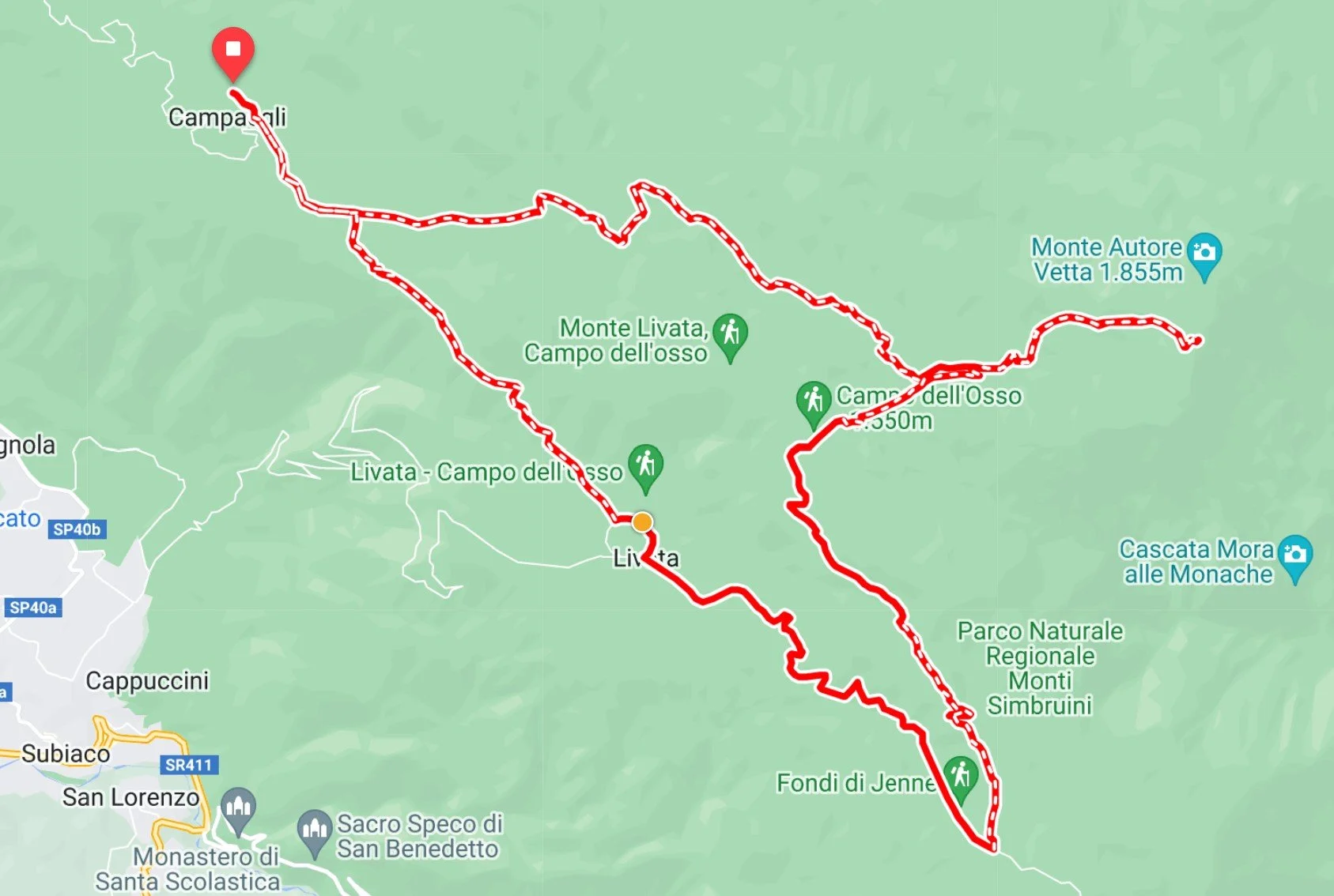 Punto di partenza prescelto per questo itinerario è la località montana di Campaegli, a quota 1.420 mt s.l.m., raggiungibile in auto al termine di una lunga salita che transita per il suggestivo borgo di Cervara di Roma.