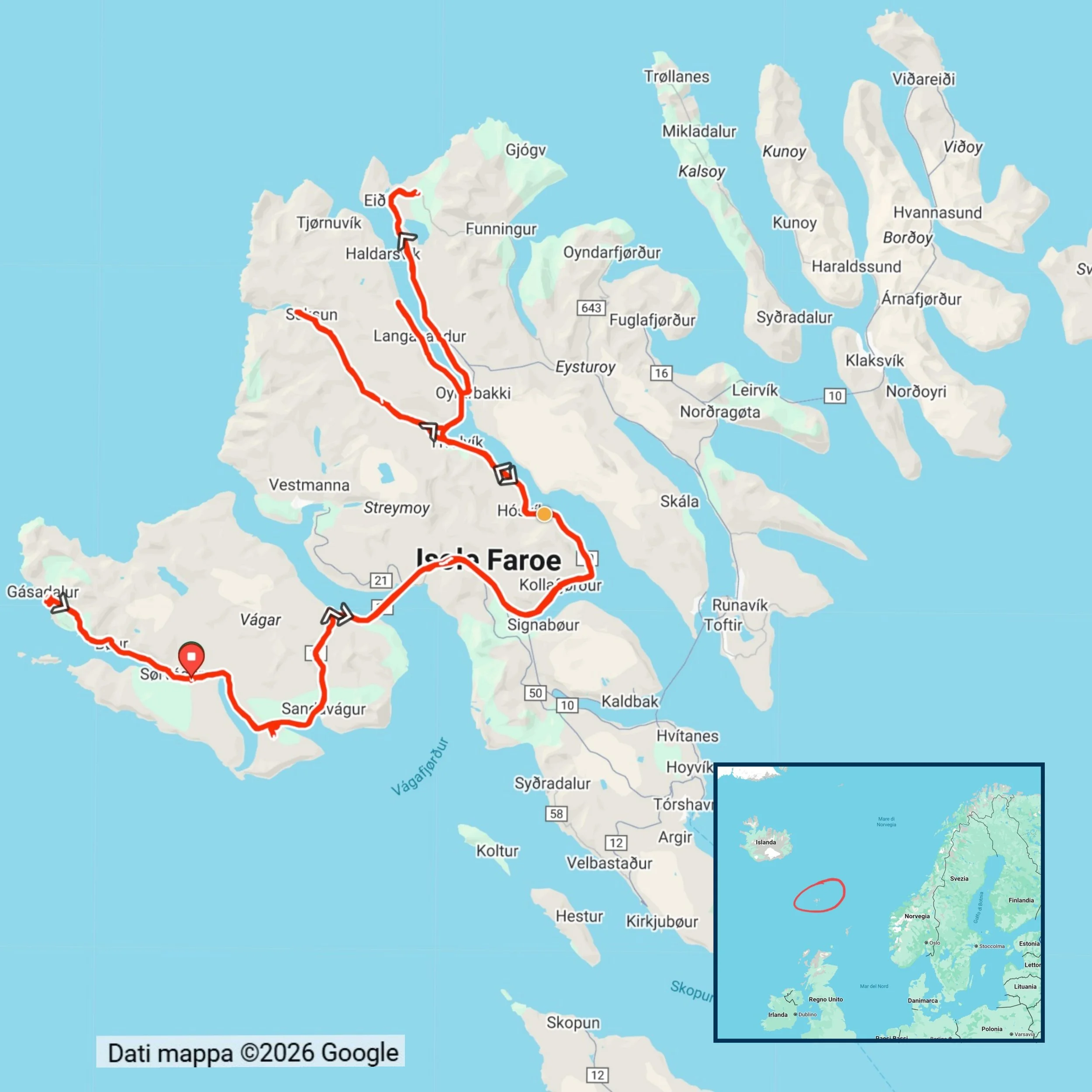 Situate in mezzo all’oceano Atlantico del nord, a metà strada tra la Norvegia e l’Islanda, le Faroe (dette anche Fær Øer o, in italiano, Isole Faringie), sono uno dei luoghi più sperduti e remoti d'Europa ed era da lungo tempo che desideravo andare alla loro scoperta, naturalmente in sella alla mia bici.