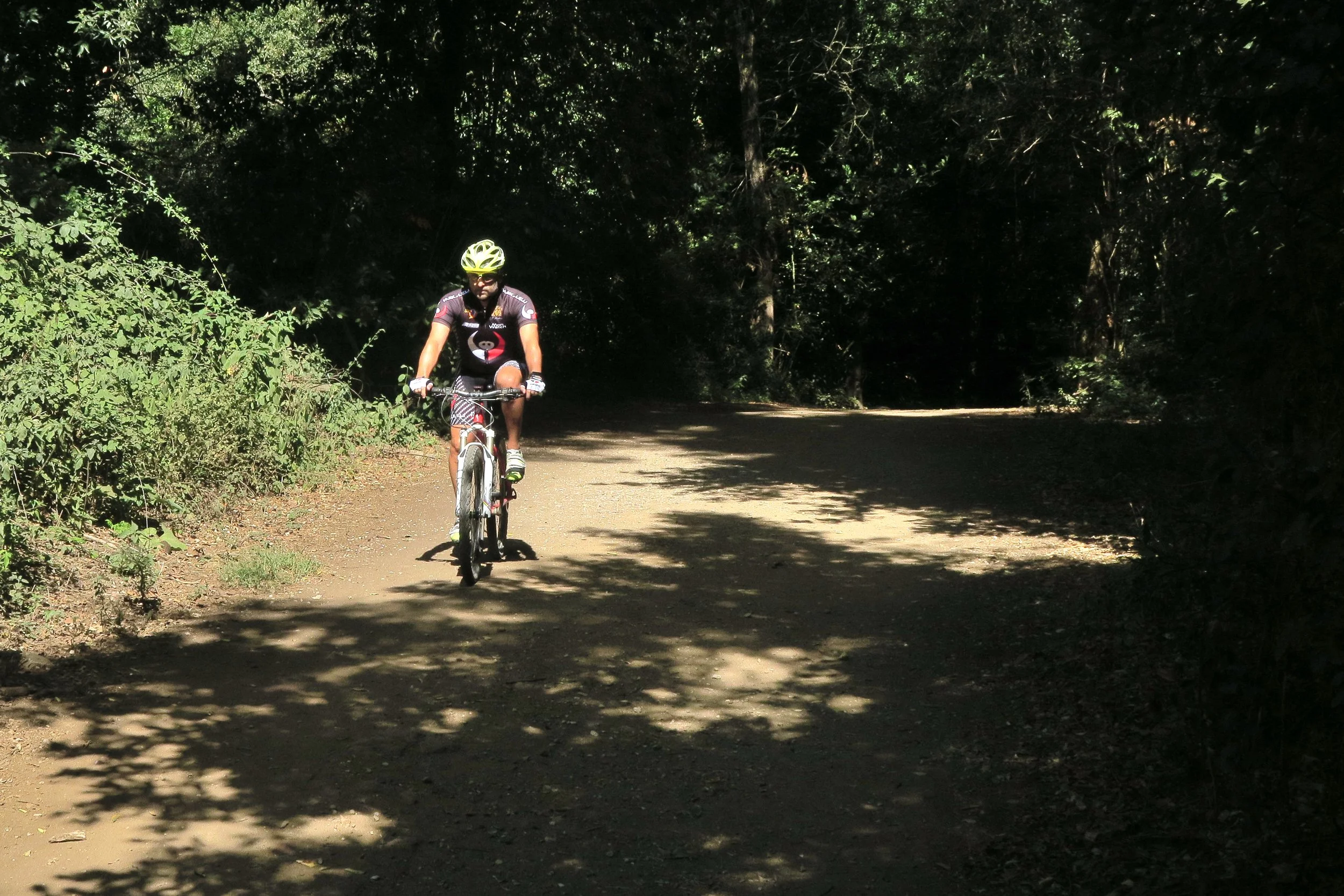 In prossimità di una curva, al chilometro 6 del percorso, abbandoniamo l'asfalto e ci addentriamo in Villa Ada. Questo polmone verde è ricco di labirintici single track, terreno di allenamento per numerosi bikers, ma il nostro obiettivo quotidiano è un altro, così preferiamo percorrere in sicurezza il largo sentiero sterrato che ci conduce al bellissimo laghetto in fondo al parco.