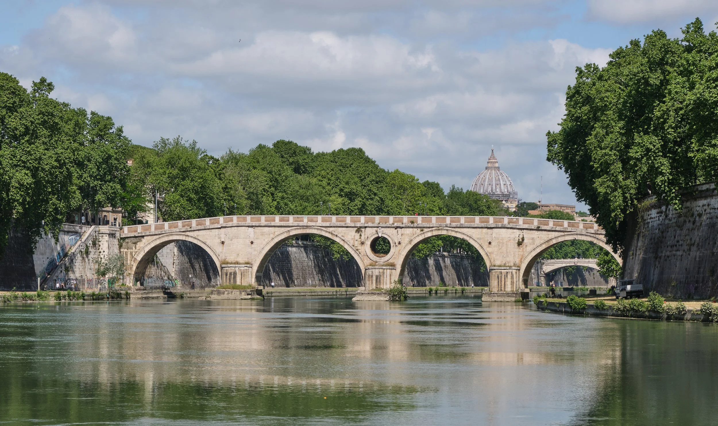 Gli ultimi 7 km che ci riportano a Ponte Milvio rappresentano la migliore delle conclusioni possibili per il nostro tour nella città eterna: come introdotti dal telecomando di un proiettore per diapositive, appaiono in rapida sequenza, davanti alle nostre ruote, i ponti più rappresentativi e scenografici di Roma, inframezzati dagli scorci sul "cupolone" di San Pietro e sull'imponente fortezza di Castel Sant'Angelo.