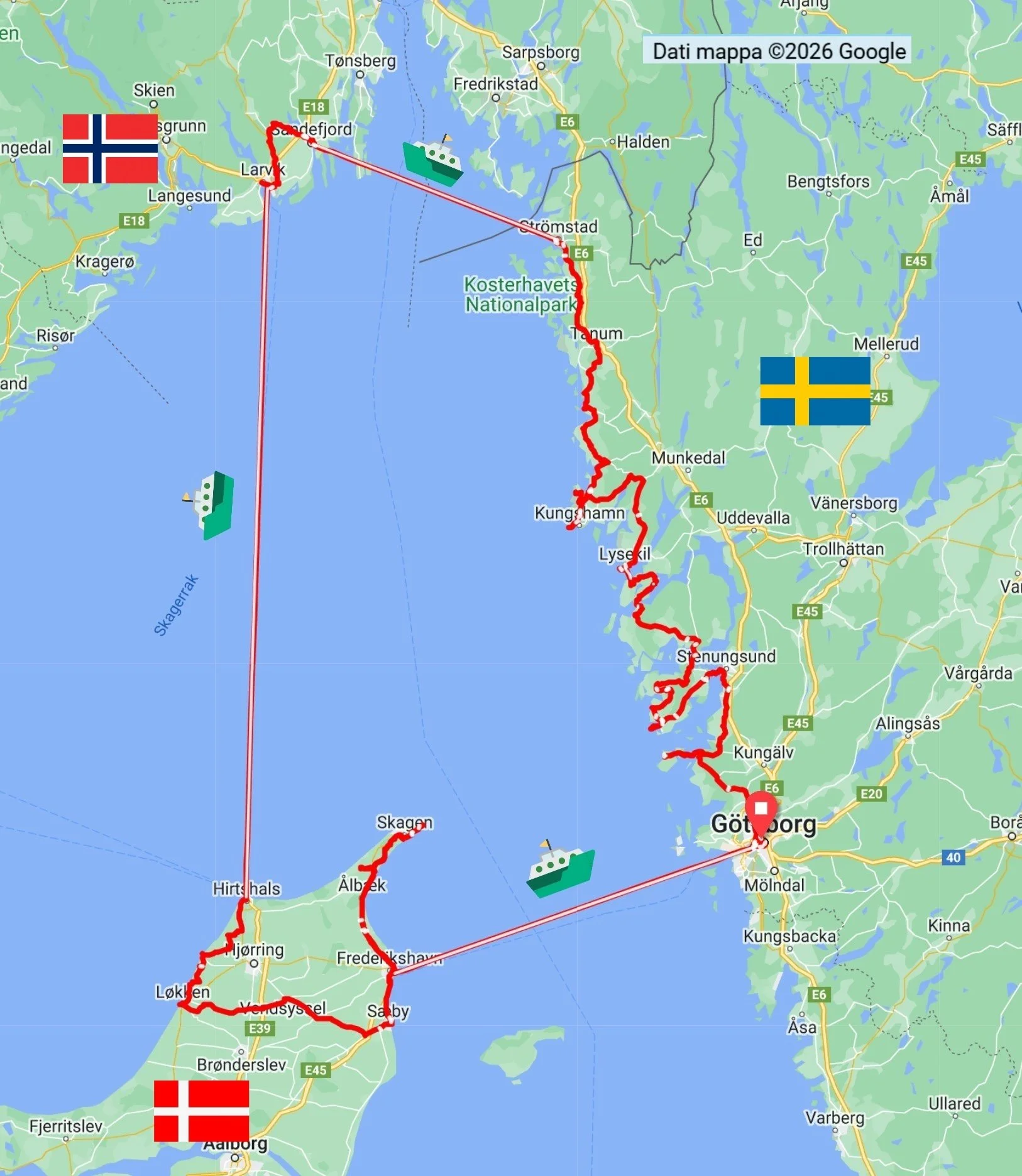 È giunto il momento di lasciare la costa svedese: la nave traghetto mi porta in Norvegia, a cui dedico esclusivamente una tappa (negli anni scorsi ho già affrontato due cicloviaggi in terra norvegese e, quindi, gli obiettivi di questa estate sono differenti) e che, di fatto, utilizzo solo come "ponte" necessario per raggiungere, con un ulteriore traghetto, la vera mèta della seconda parte della vacanza: la Danimarca.